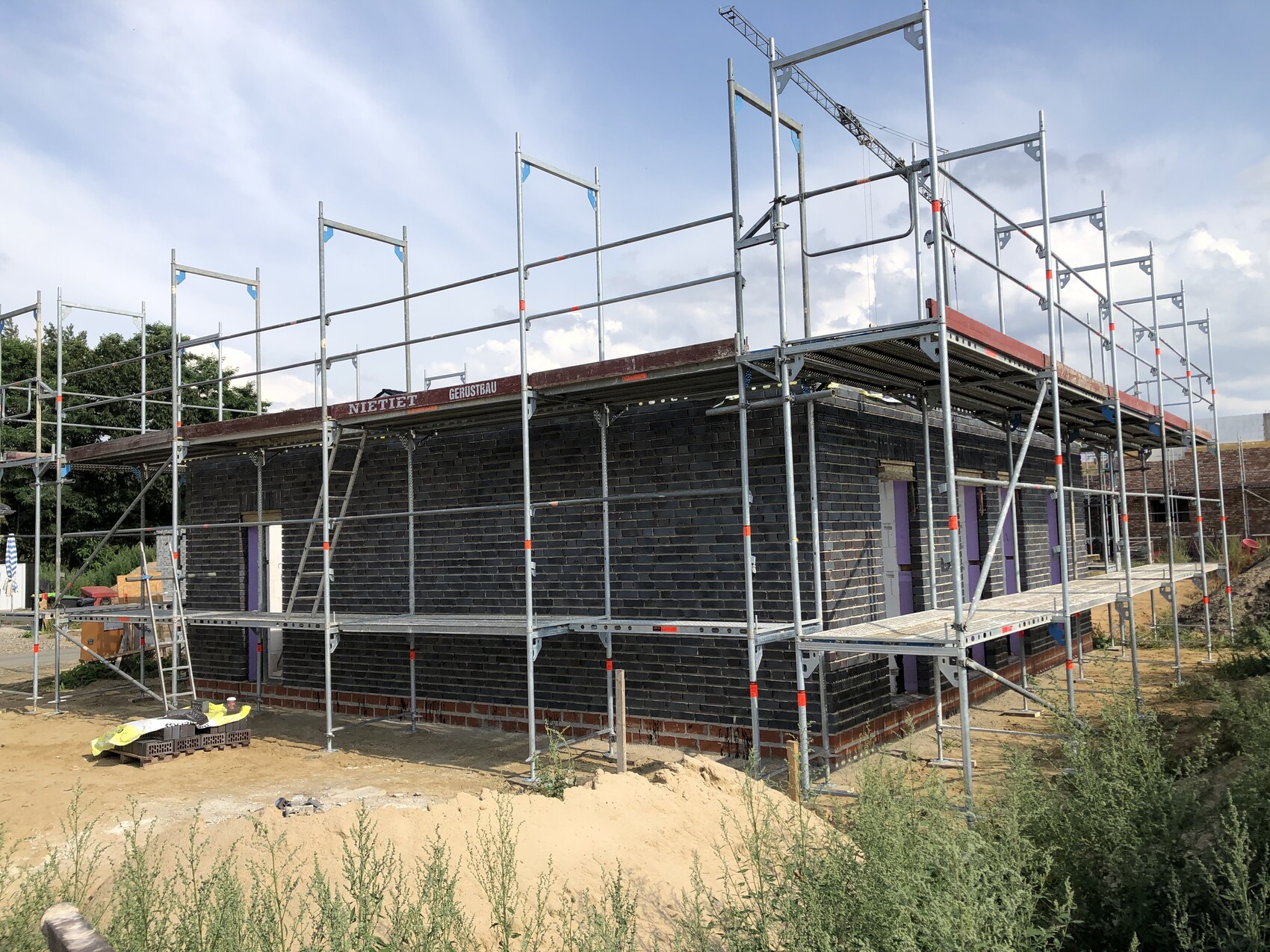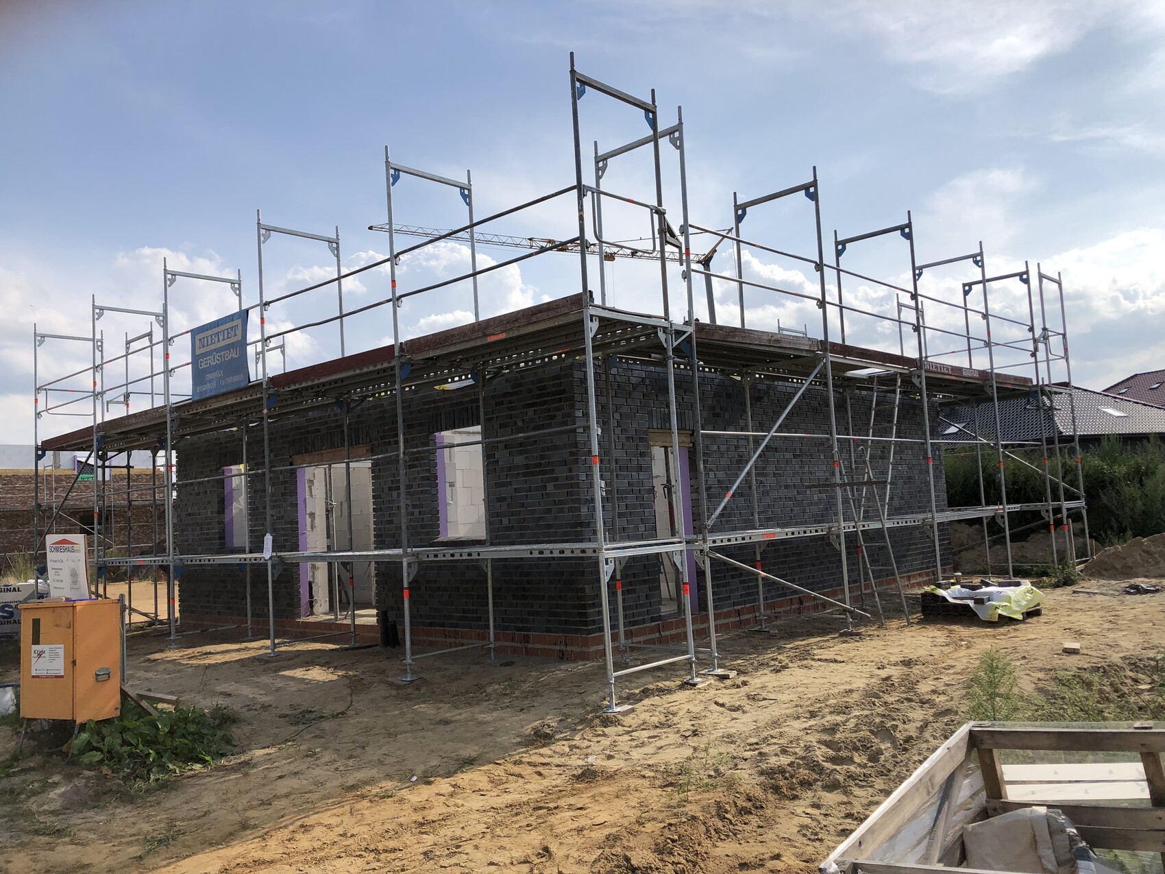 Heute (10 Arbeitstag) kam das Gerüst an das Haus.