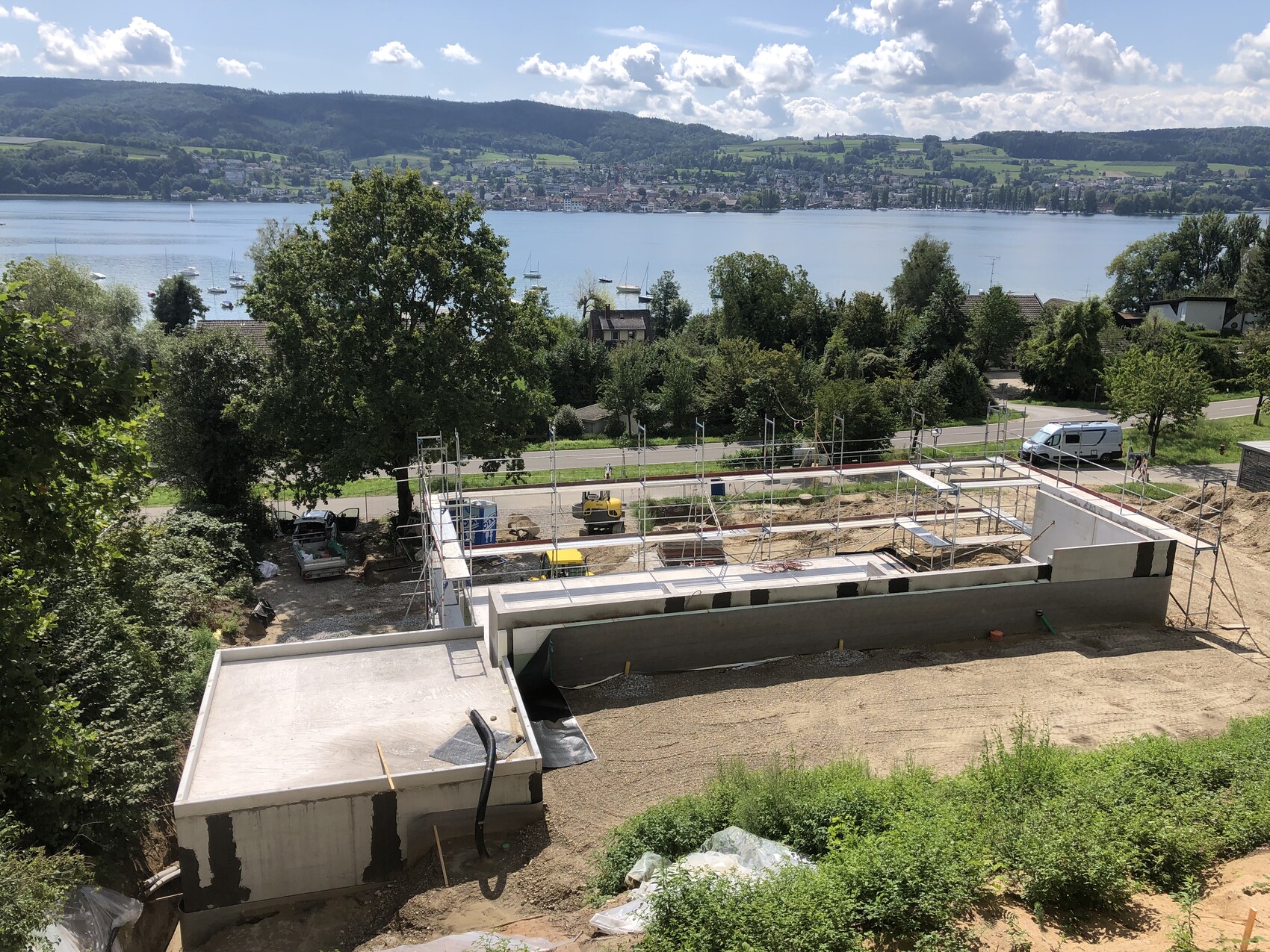 Ja der Ausblick von der oberen Grundstücksgrenze ist klasse und hat den Vorteil, dass wir keine Drohne benötigen um den Baufortschritt zu dokumentieren. Wie viel See wir vom Haus aus sehen, kann ich hoffentlich Ende nächster Woche sagen.