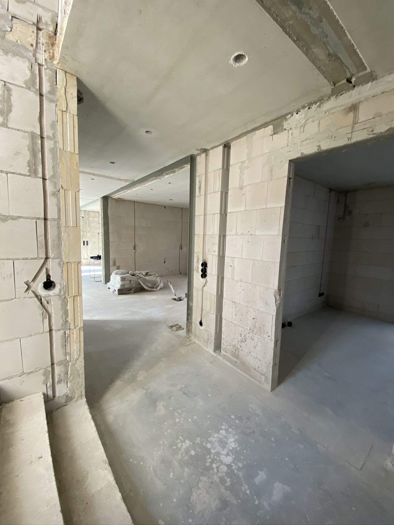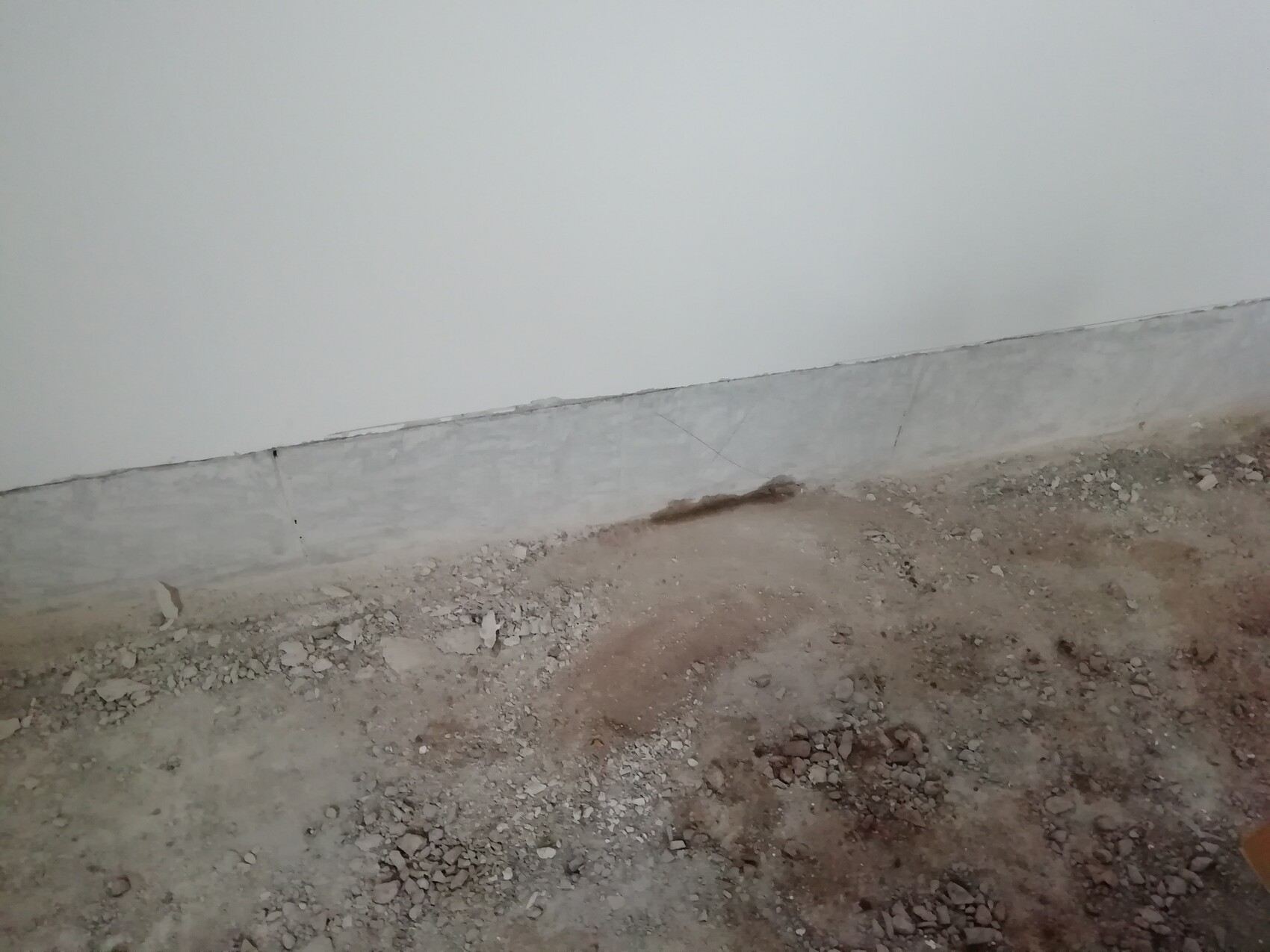 Habe dann draußen in mühseliger Kleinarbeit die ganzen Putzreste abgekloppt und gesäubert und 2k Dichtschlämme aufgetragen.