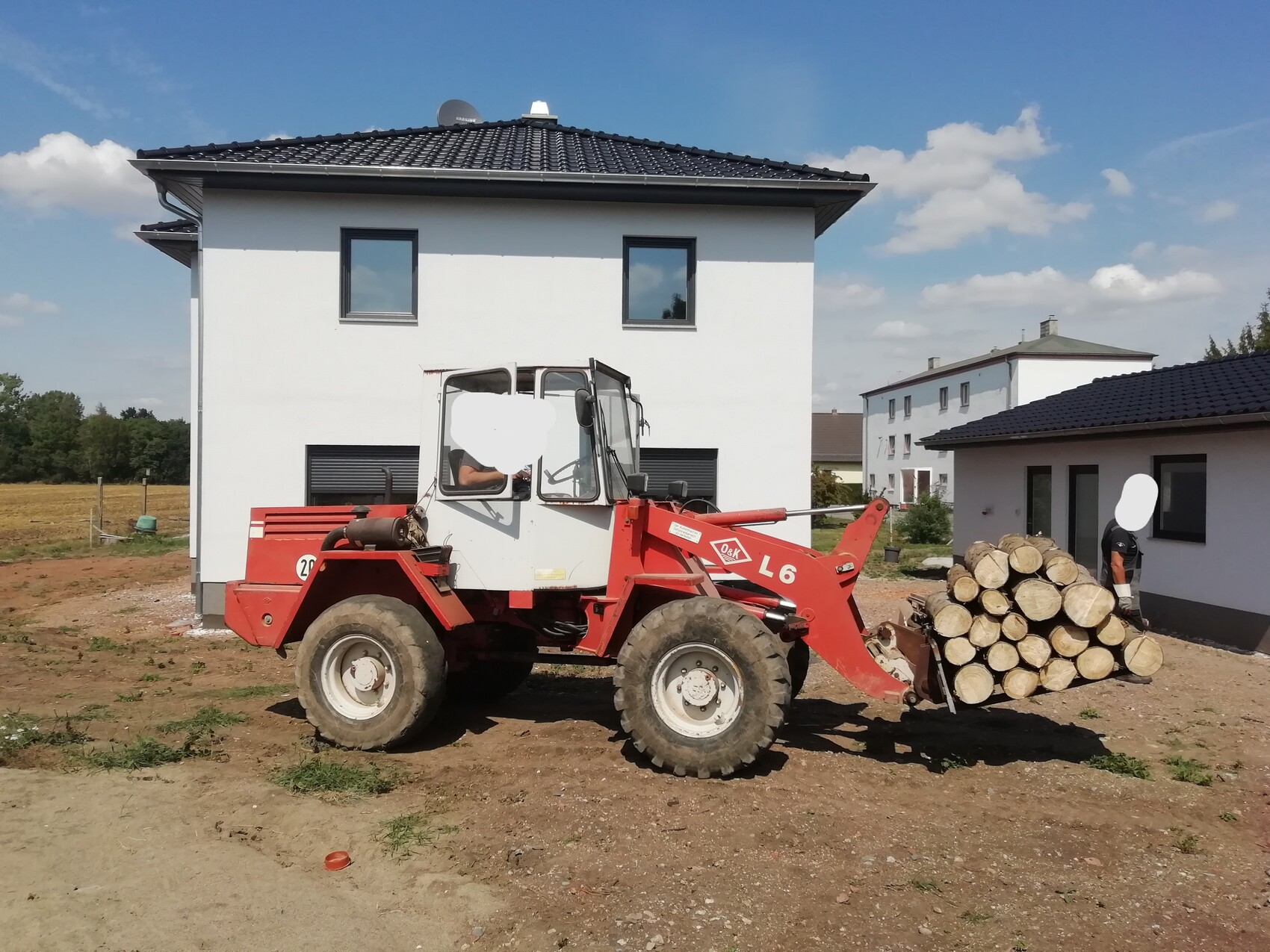 Glücklicherweise habe ich einen netten Nachbarn mitm Radlader, so konnten wir ohne große Mühe die ganzen Stämme transportieren...