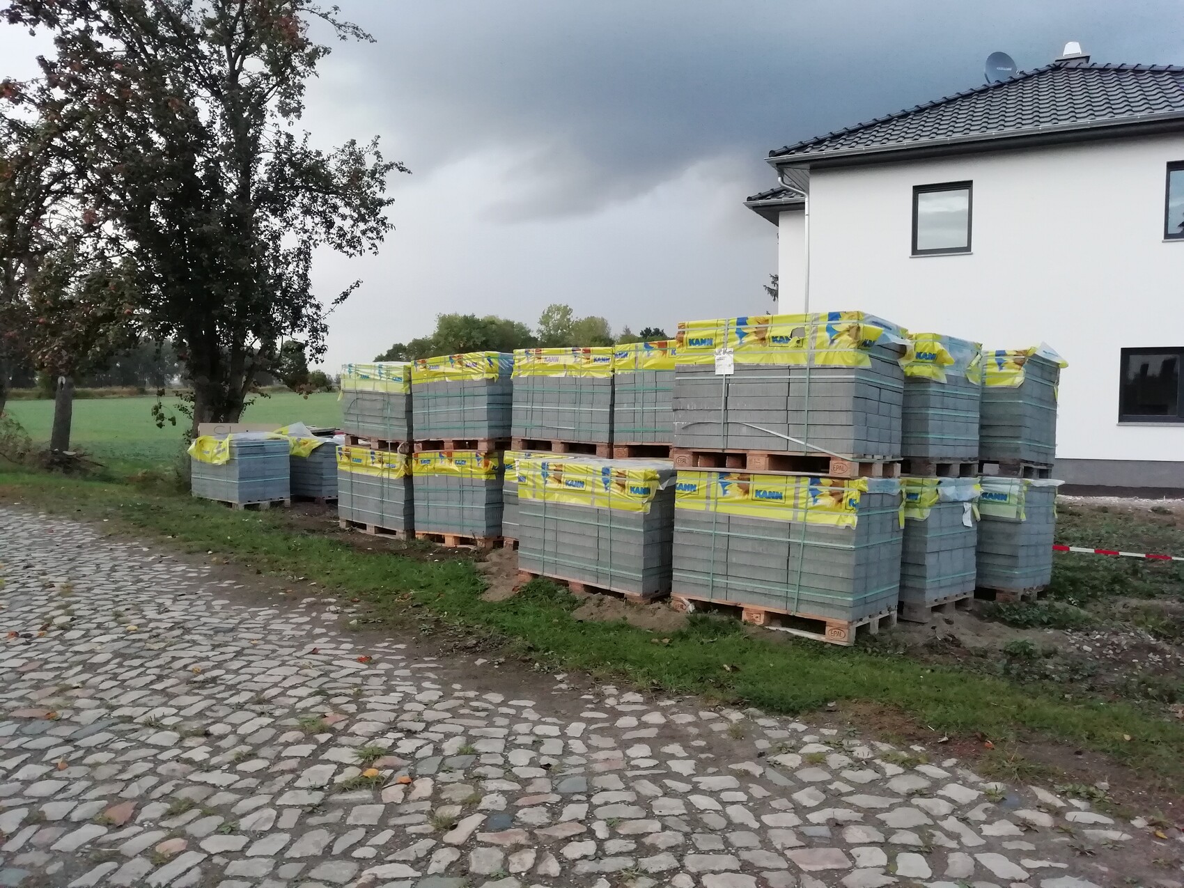 Eigentlich sollte schon längst gepflastert worden sein. Leider hat mein erster Außenputzer die Fassade komplett verpfuscht. Sowohl optisch als auch technisch. Alle Fensterbänke waren nicht fachgerecht eingedichtet.