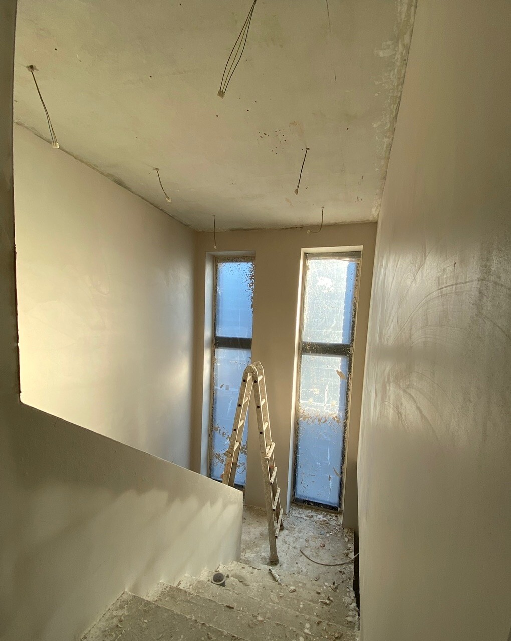 Bei uns kam draußen die Dämmung darauf und es wurde grundiert. Da das Gerüst an zwei Seiten auch schon weg ist, wirkt es jetzt auch immer mehr nach richtigem Haus und man kann sich das Endergebnis immer besser vorstellen: