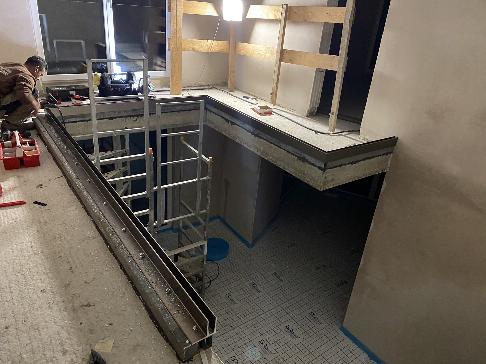 Nach links wird der Balkon weiter gebaut ums Haus rum.