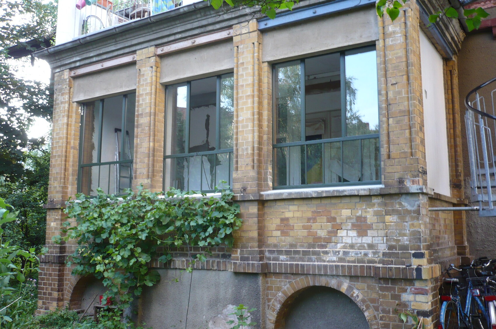 Im Zuge dessen gab's auch neue Fenster, die hat sich besagter Schreiner ausgedacht und auch gebaut. Die sind also nicht Original, passen aber, wie ich finde, gut zum Stil der Verande.