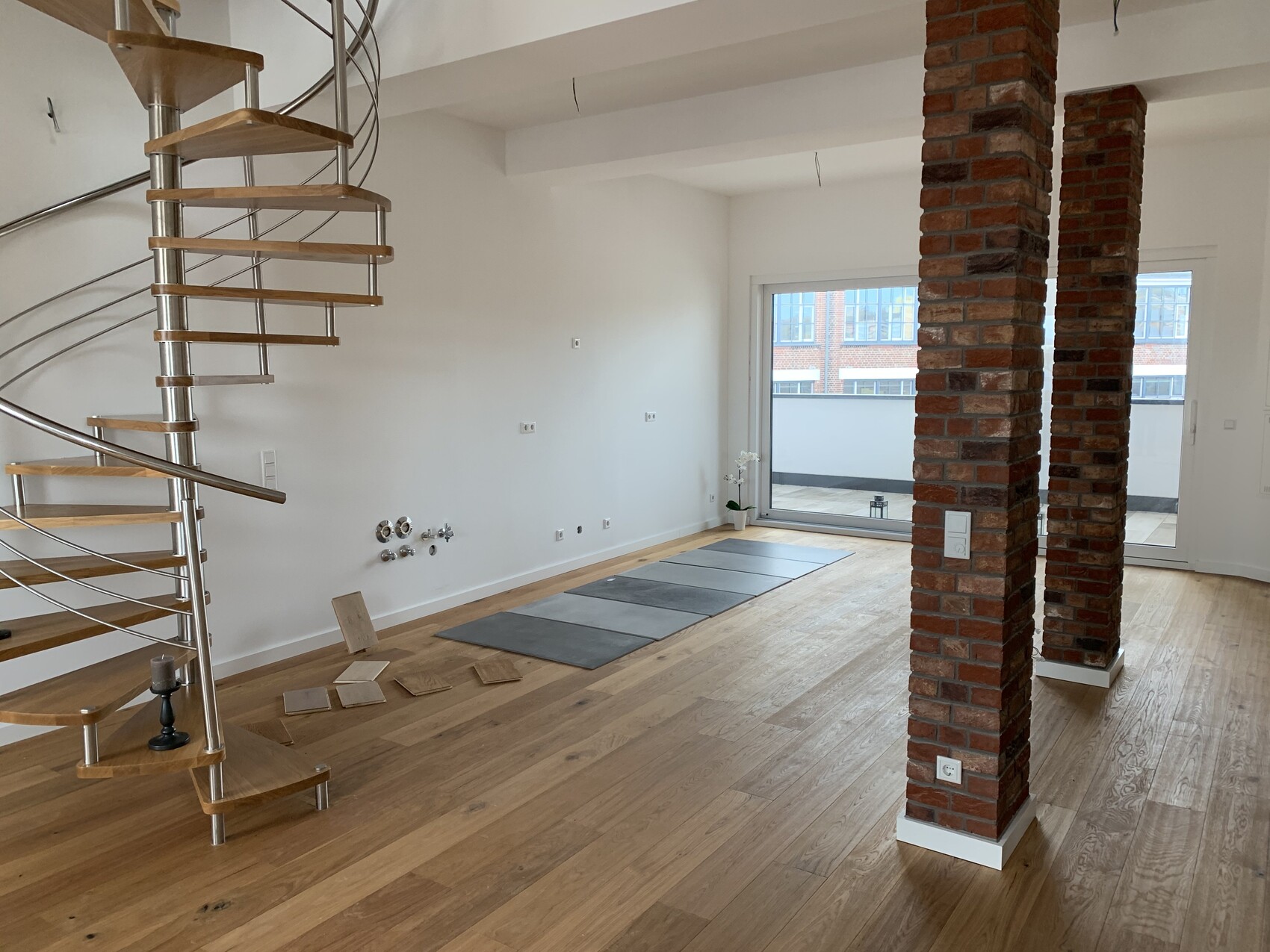 Auch wenn es hier ja um Bilder von Häusern geht stelle ich einfach mal mein Projekt 2020 vor. Bei uns geht es in eine andere Richtung, von einem 160m2 Fachwerkhaus aus dem Jahr 1856 mit 1000m2 Grund in ein Loft in einem Industriedenkmal. Ganz oben 178m2 über zwei Ebenen mit einer wunderschönen Loggia 18m2 Größe. Komplett neu Saniert.
