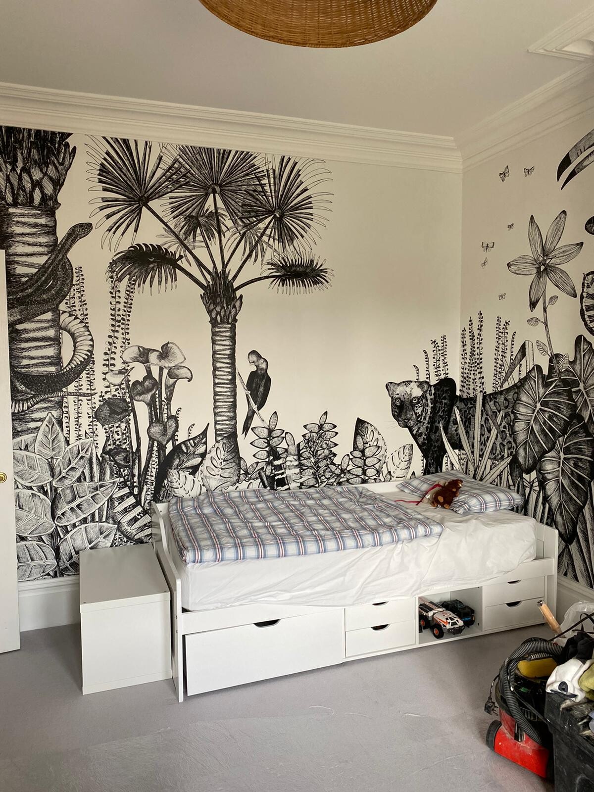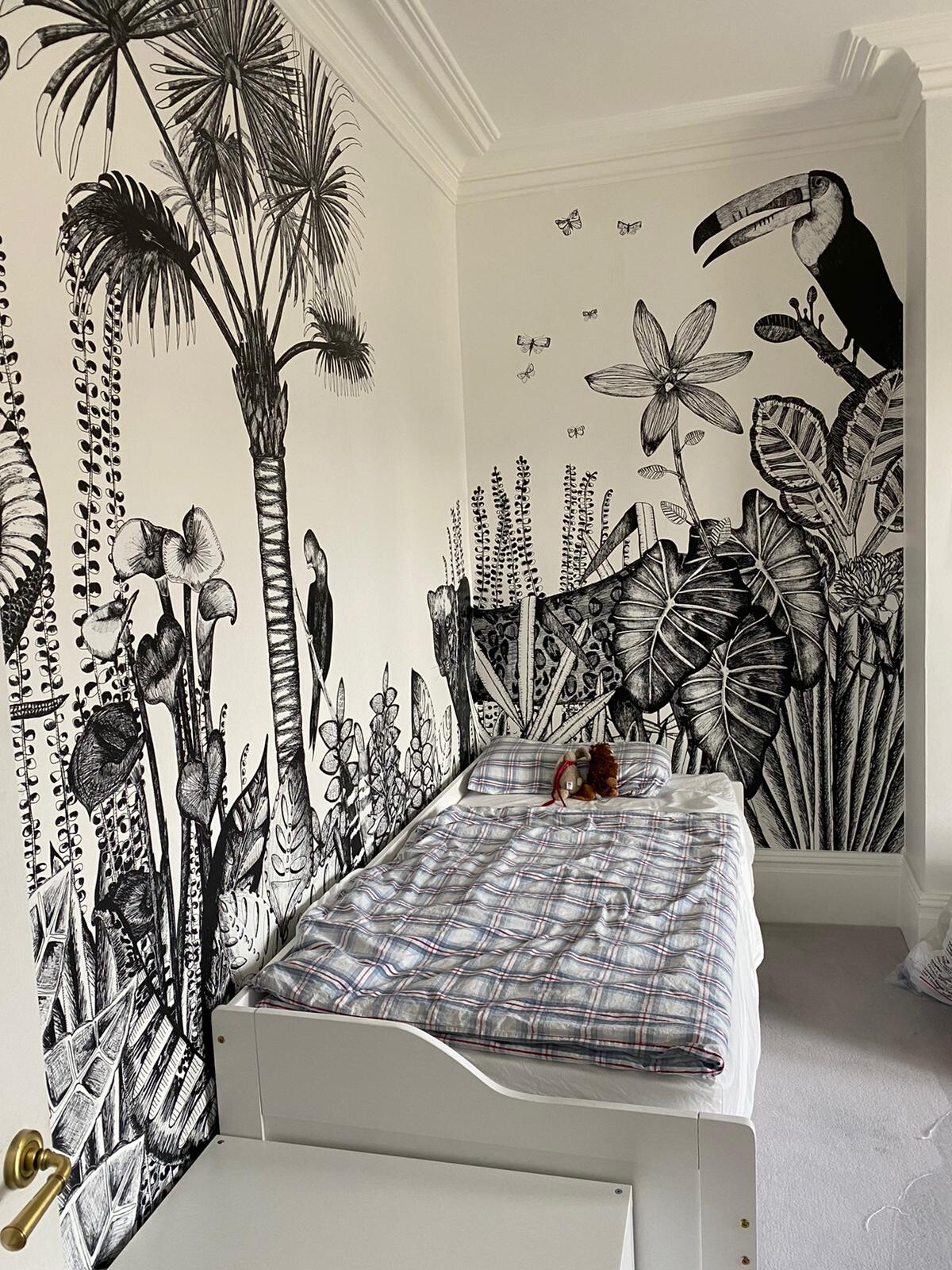 Du meinst die Tapete neben der roten Wand? Das sind kleine Striche in verschiedenen Farben. Den Rotton daraus haben wir dann für die Wand gewählt.Ja genau. Der Raum hat eine so freundliche Ausstrahlung. Wirklich mutig und sehr gelungen !