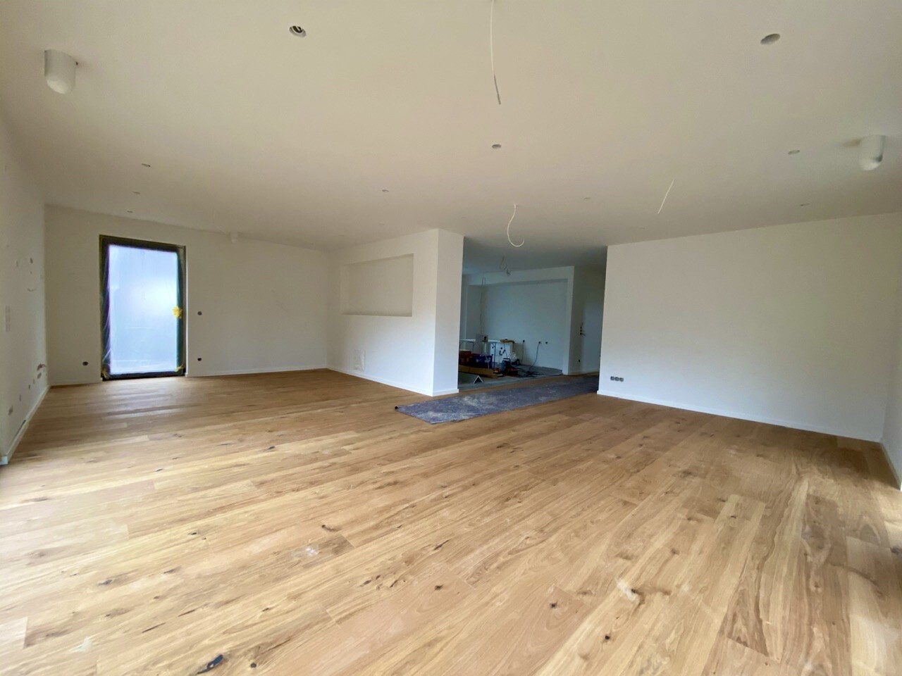 Die Küche ist in die Richtung aus der die meisten Fotos gemacht wurden offen zum Wohnbereich. Auf dem Foto unten siehst du hinten in der Mitte die Küche noch ohne Möbel.