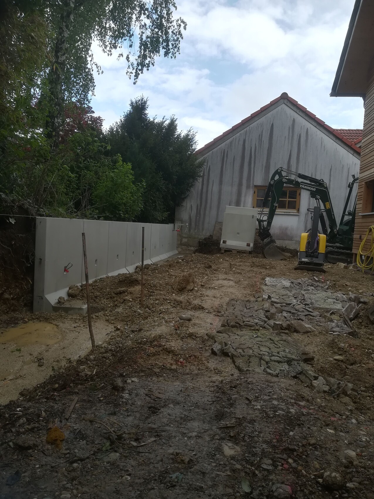 Egal, die erste Mauer steht fast schon. Bis letzten Mittwoch hat es bei uns ums Haus noch so ausgeschaut: