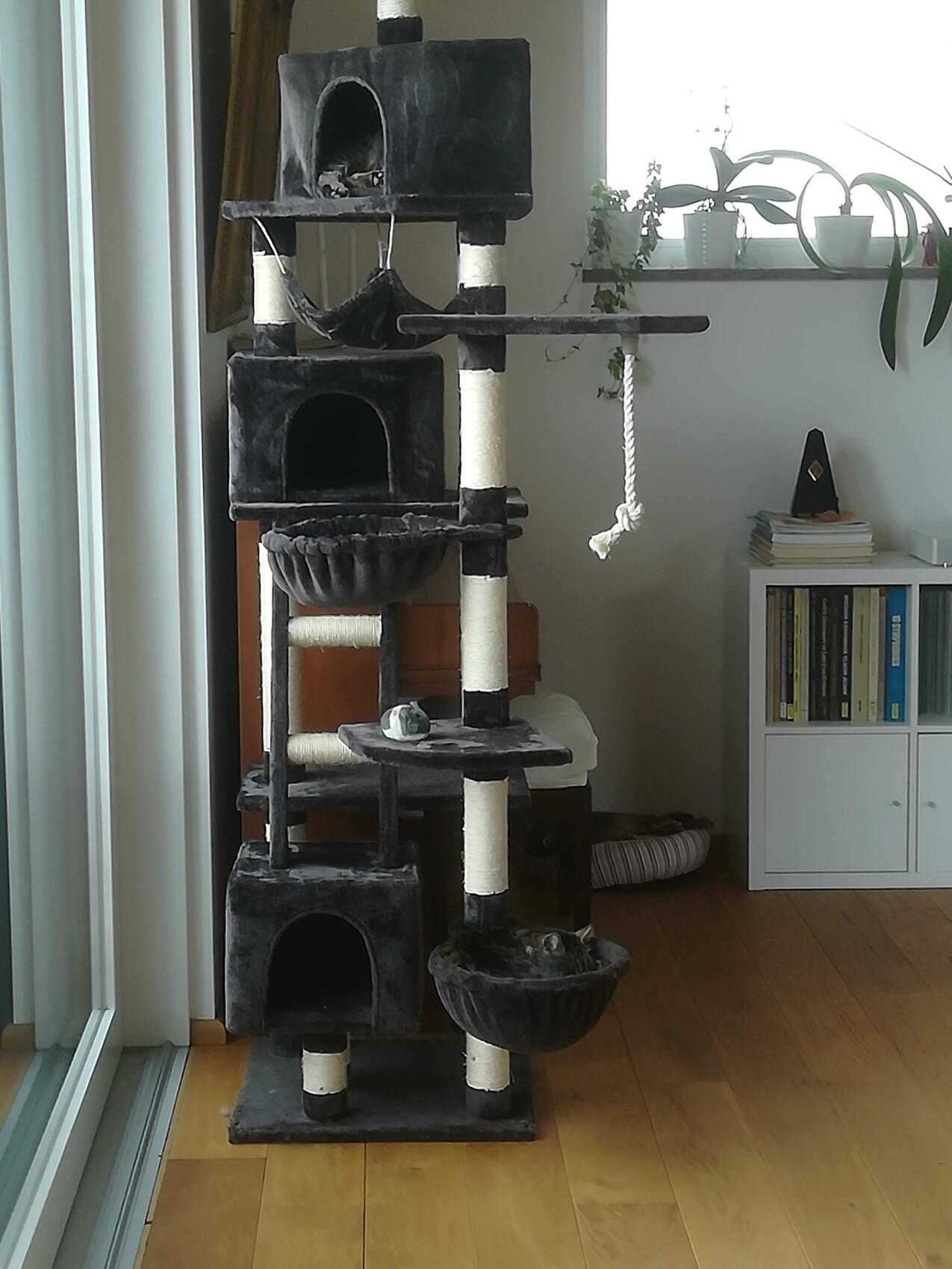 Unsere Katzen jedenfalls sind stinkig - Veränderungen sind dooooof und die alte Mauer zum Nachbarn war breiter, da konnte man so gut in der Sonne liegen (nur leider drohte sie umzukippen, aber das ist in der Katzenwelt halt nicht relevant), alles anders, dreckig und überhaupt. Wir haben grad drei kleine Motzkrümel zu Hause. Dass die Herrschaften es auch nicht einsehen, sich mal die Pfoten sauber zu machen bevor sie motzend rein kommen, ist auch nicht ihr Problem, sondern meines. Ansonsten wird sich aktuell im Kratzbaum verkrümelt um möglichst wenig von dieser verrückten Welt mitzubekommen: