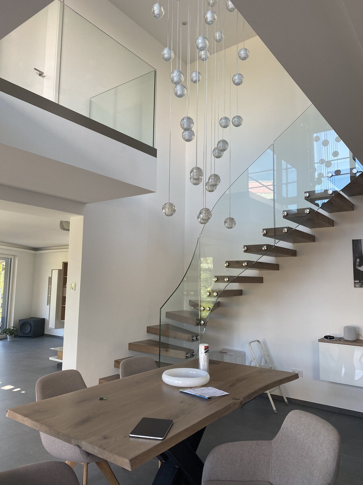 Unsere Treppe ist endlich fertig.....Sieht sehr schick aus , herzlichen Glückwunsch dazu.Wir überlegen noch an unserer Treppen- & Handlaufform. Glas schreckt mich ein wenig ab, zumindest wenn ich an die möglichen Fingerspuren denke