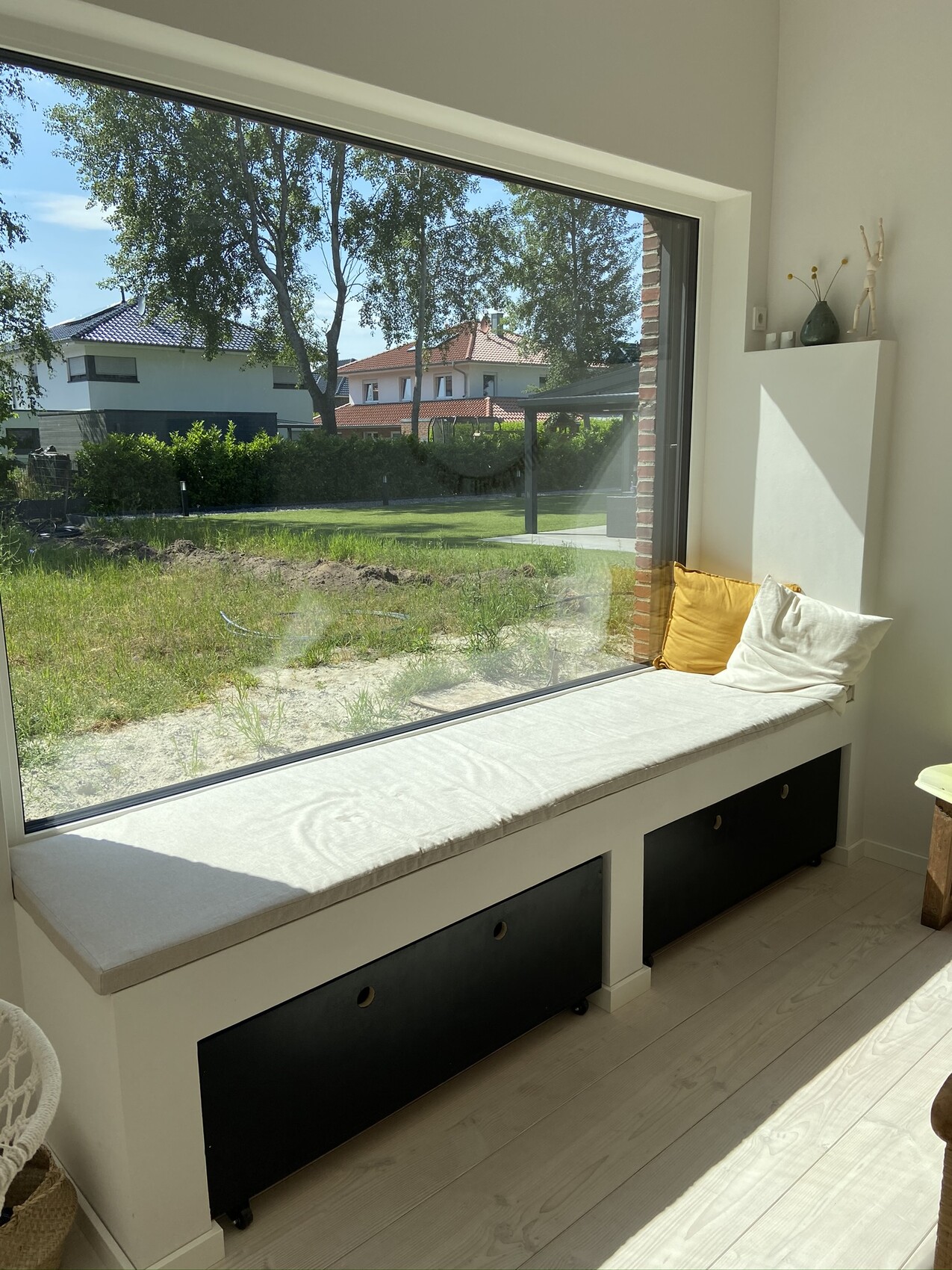 Wir finden die Idee einer Sitzfensterbank auch total schön. Die Fenster haben dann aber immer ein Sondermaß bzgl. Größe und Brüstungshöhe. Das empfinden wir als zu unflexibel ♀️ Wir suchen gerade nach Ideen und Lösungen zu Alternativen an einem Fenster oder einer Terrassentür mit Standardmaße