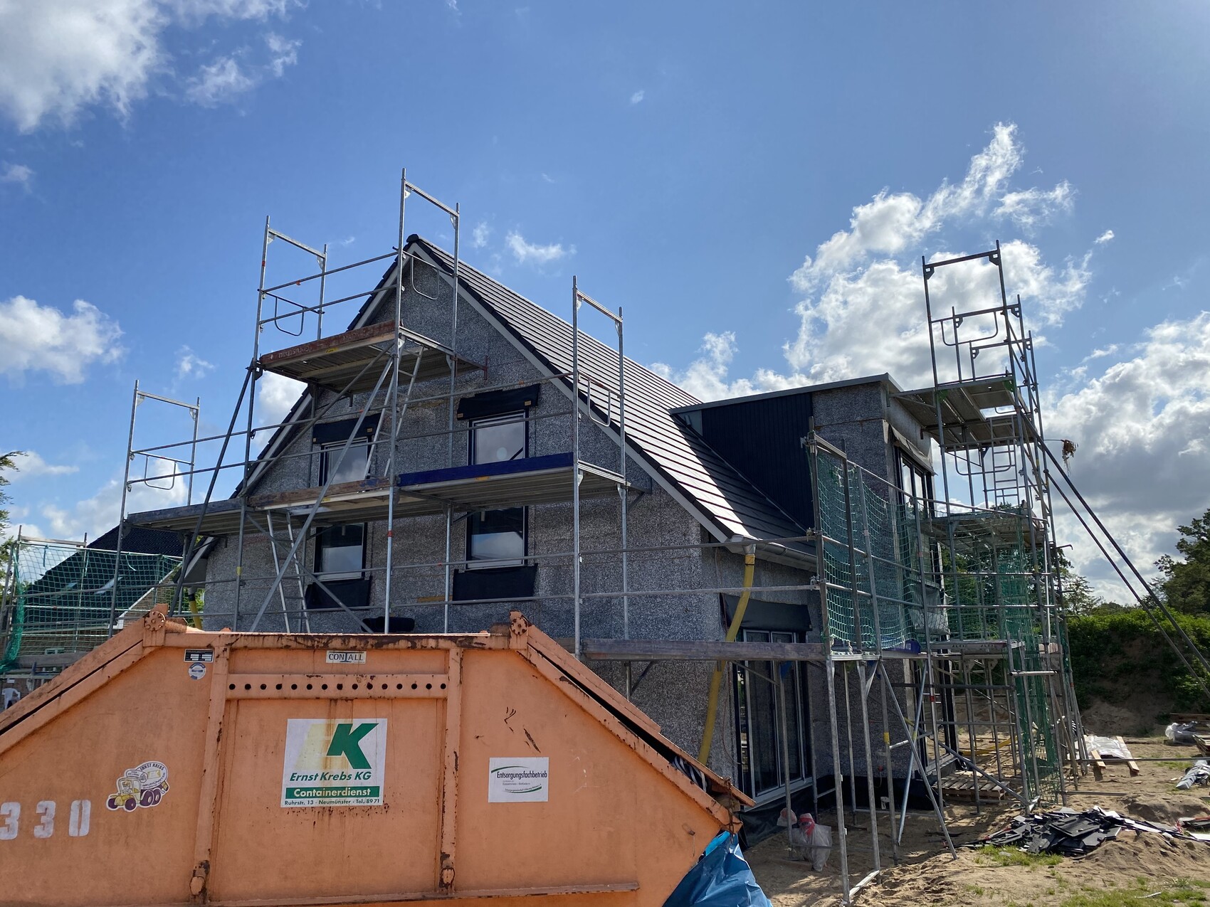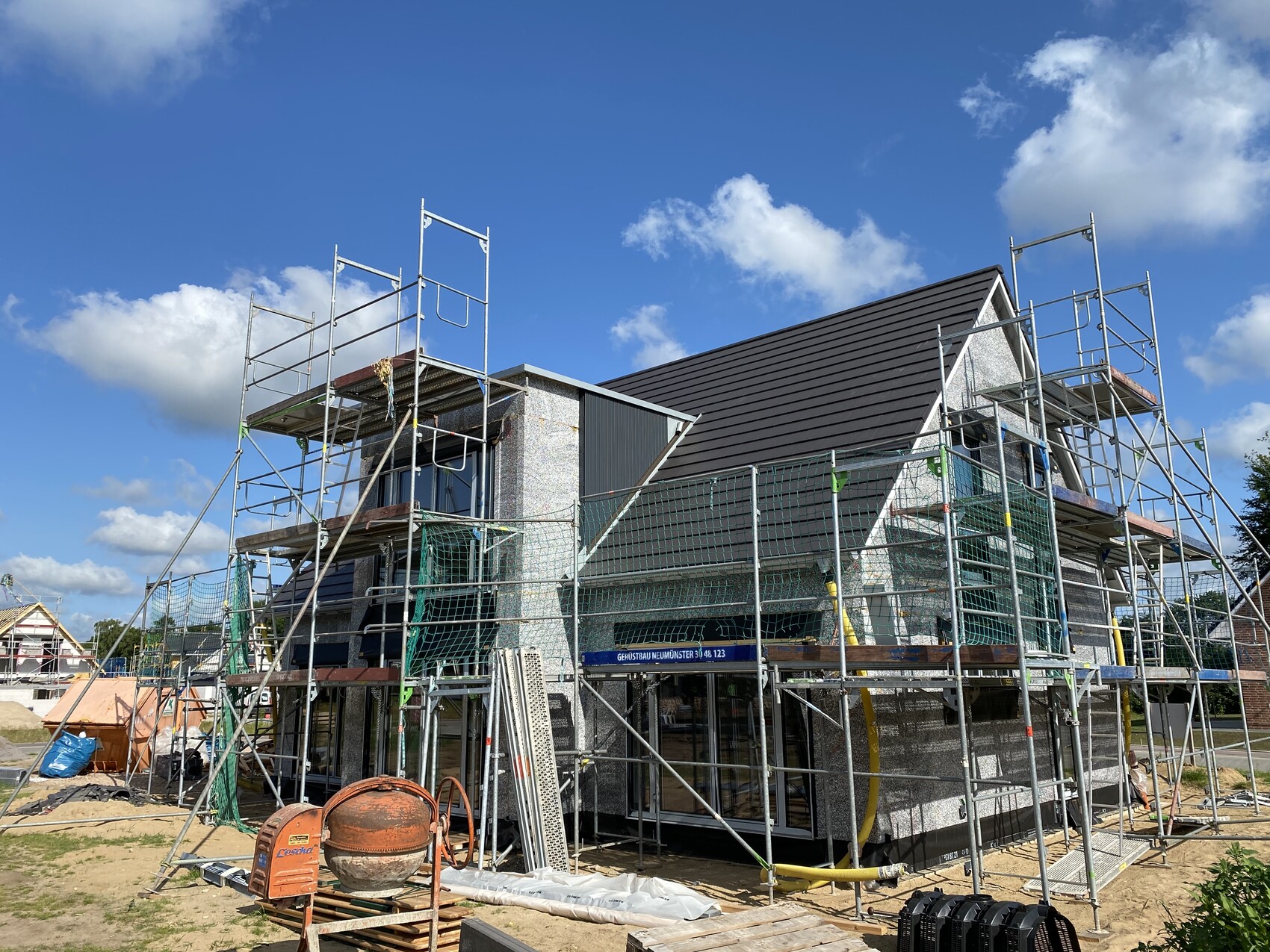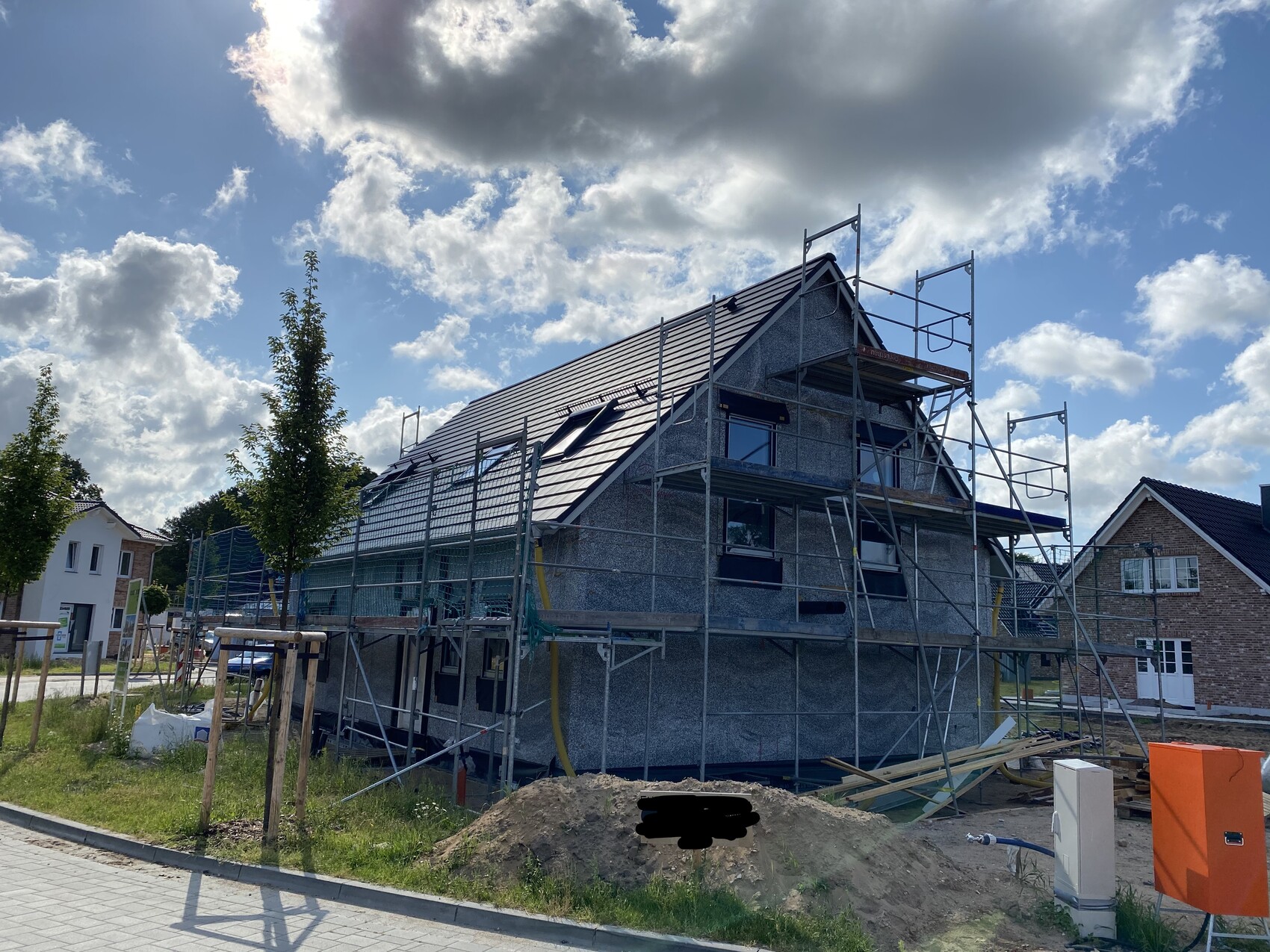 das Dach wurde am Montag ausgebessert. Ich habe nochmal 1-2 vorher Bilder dazu getan. Es hat tatsächlich die Unterfütterung der Traglattung bei der Giebelwand gefehlt. Zusätzlich wurden alle Dachpfannen nochmal auf richtigen Sitz kontrolliert. Hier wurde ohne zu murren schnell reagiert, sind hier wirklich zufrieden mit der Kommunikation.