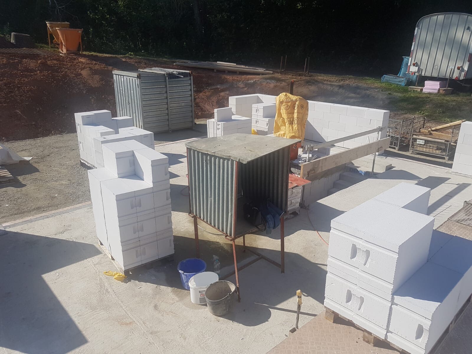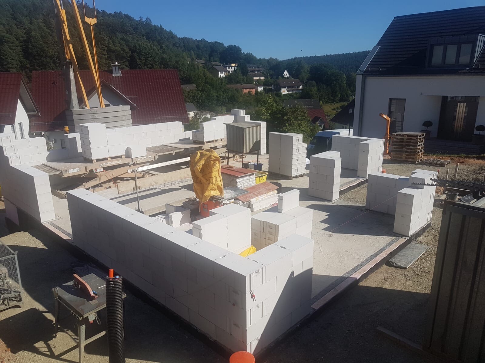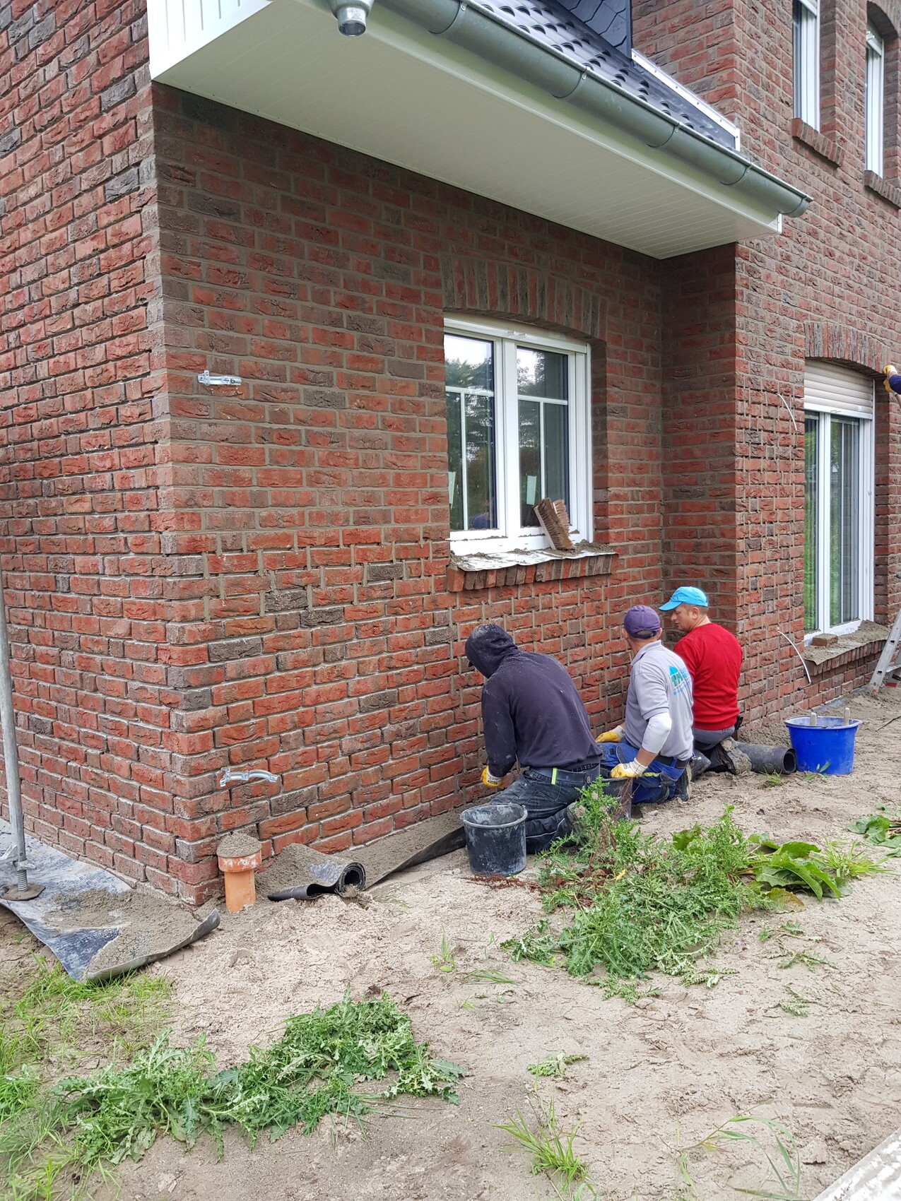 Gestern haben sie unser Haus nun verfugt außen. Ich bin schon sehr gespannt wie's trocken aussieht, die Probefuge sah deutlich heller aus.