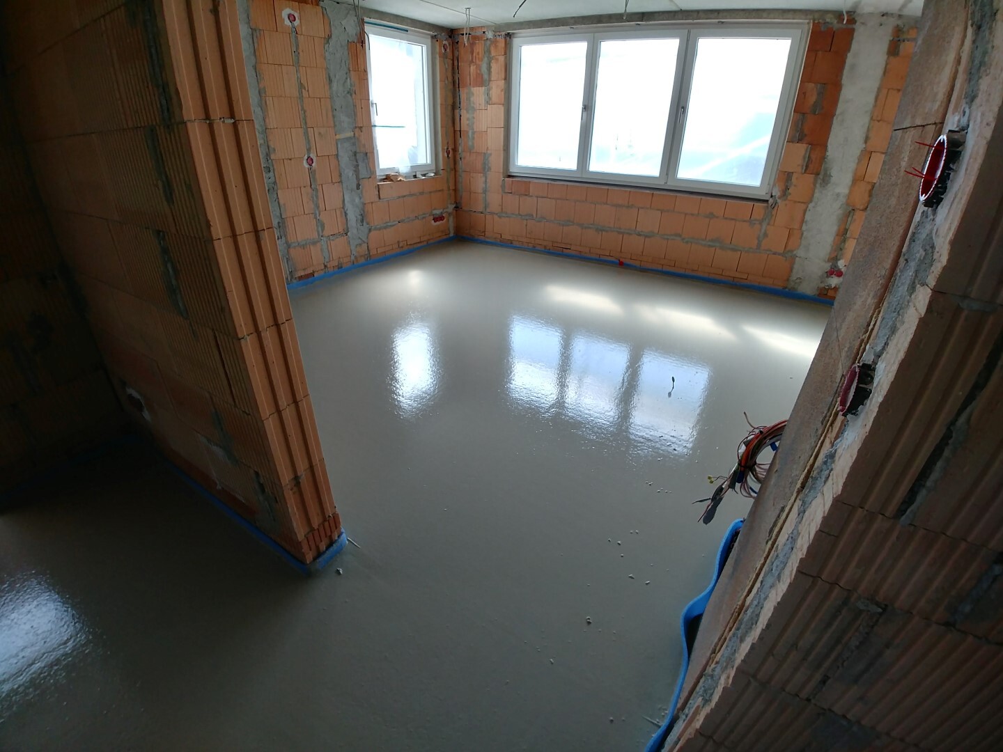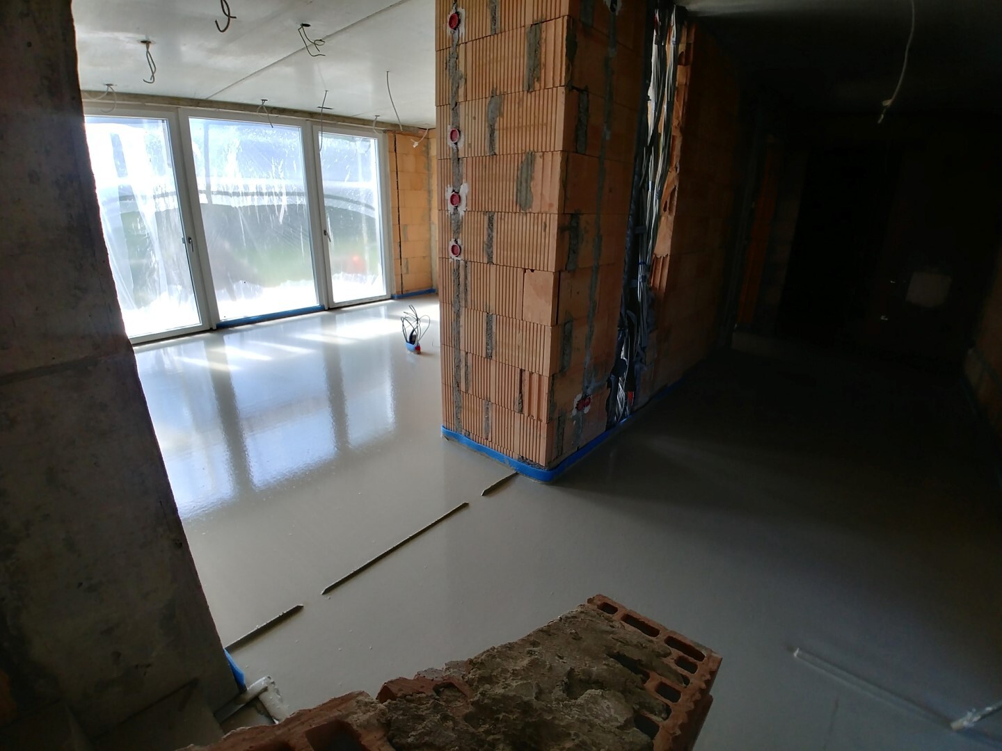 Freitag kommt noch der Klima-Installateur wegen Kondensat und der Elektriker, weil er noch ein Kabel legen muss, dann geht´s nächste Woche mit dem Innenputz los.