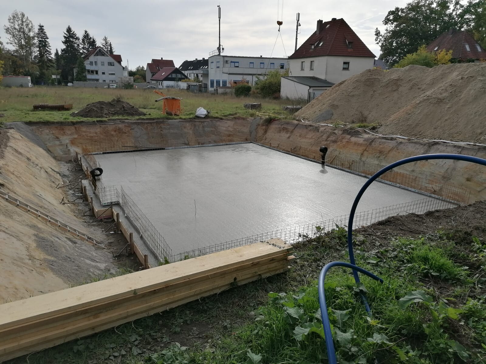 Gemeinsame Bodenplatte für 2 Häuser? Hoffentlich überträgt sich der Schall nicht zu stark.
