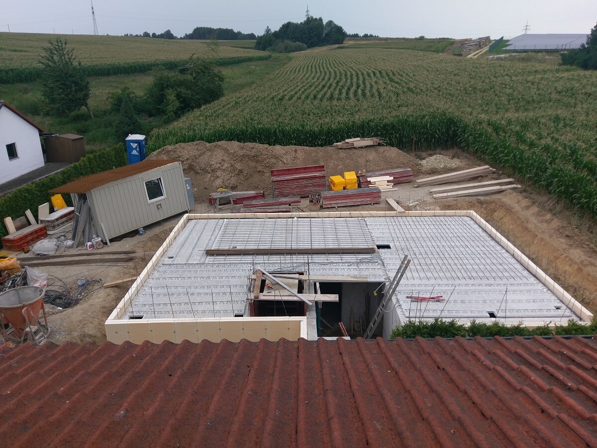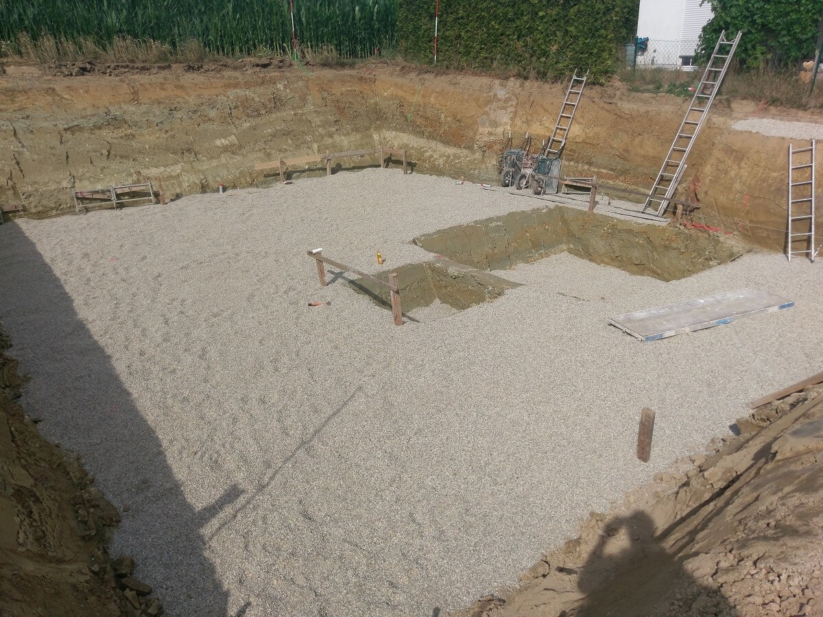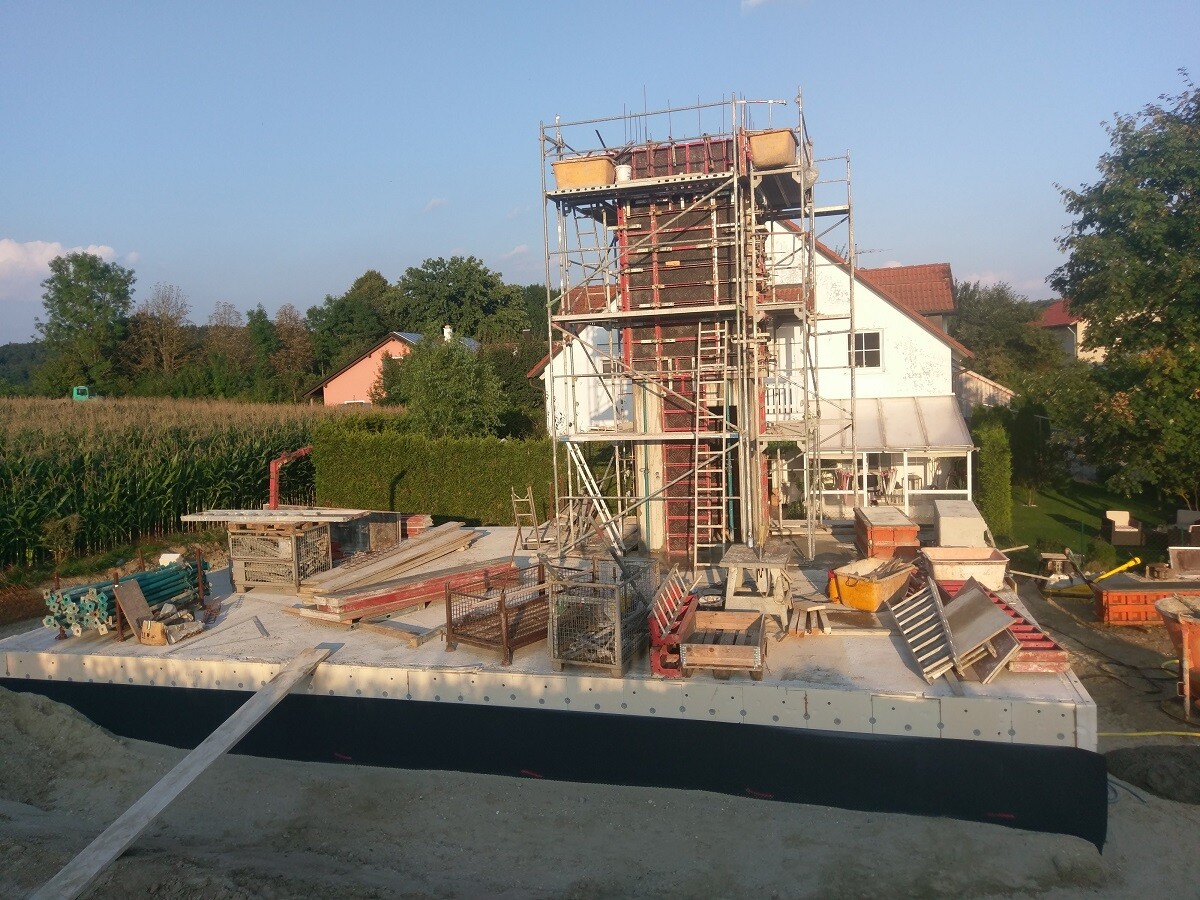 Ende Juli wurde begonnen, Keller ist so gut wie fertig, der Aufzugsschacht ebenso, der