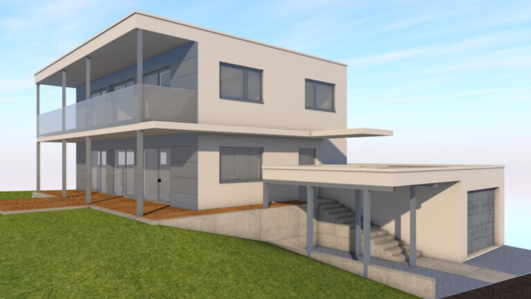 dann will ich auch mal was hier beitragen, wir bauen ein KFW40-Haus in Niederbayern. Bauhausstil, begrüntes Flachdach. Wir bauen mit einem Architekten, der mit unserer Abstimmung die Gewerke vergibt. Hauptaugenmerk war, möglichst große Fensterflächen nach Westen zu haben, denn da befindet sich die freie Aussicht auf den Sonnenuntergang. Die Lage ist unverbaubar, sonst hätten wir es so nicht gemacht.