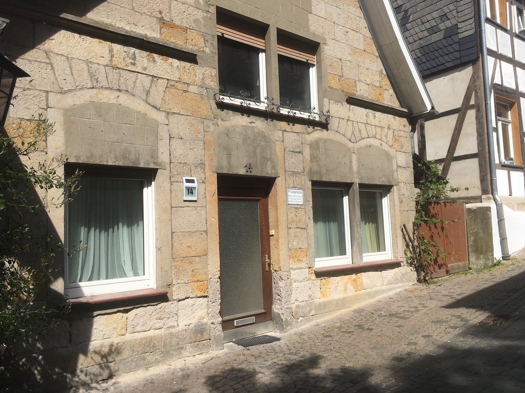 Ein ziemlich blöder Fehler von mir, wenn ich immer noch Sandstein und Bruchstein vertausche....das mit den verschlossenen Fenstern hat tatsächliche innerliche Gründe. in den 60er Jahren wurde eine Stahlbetondecke eingezogen, die auch den Beton und das Fenster im oberen Bereich erklärt