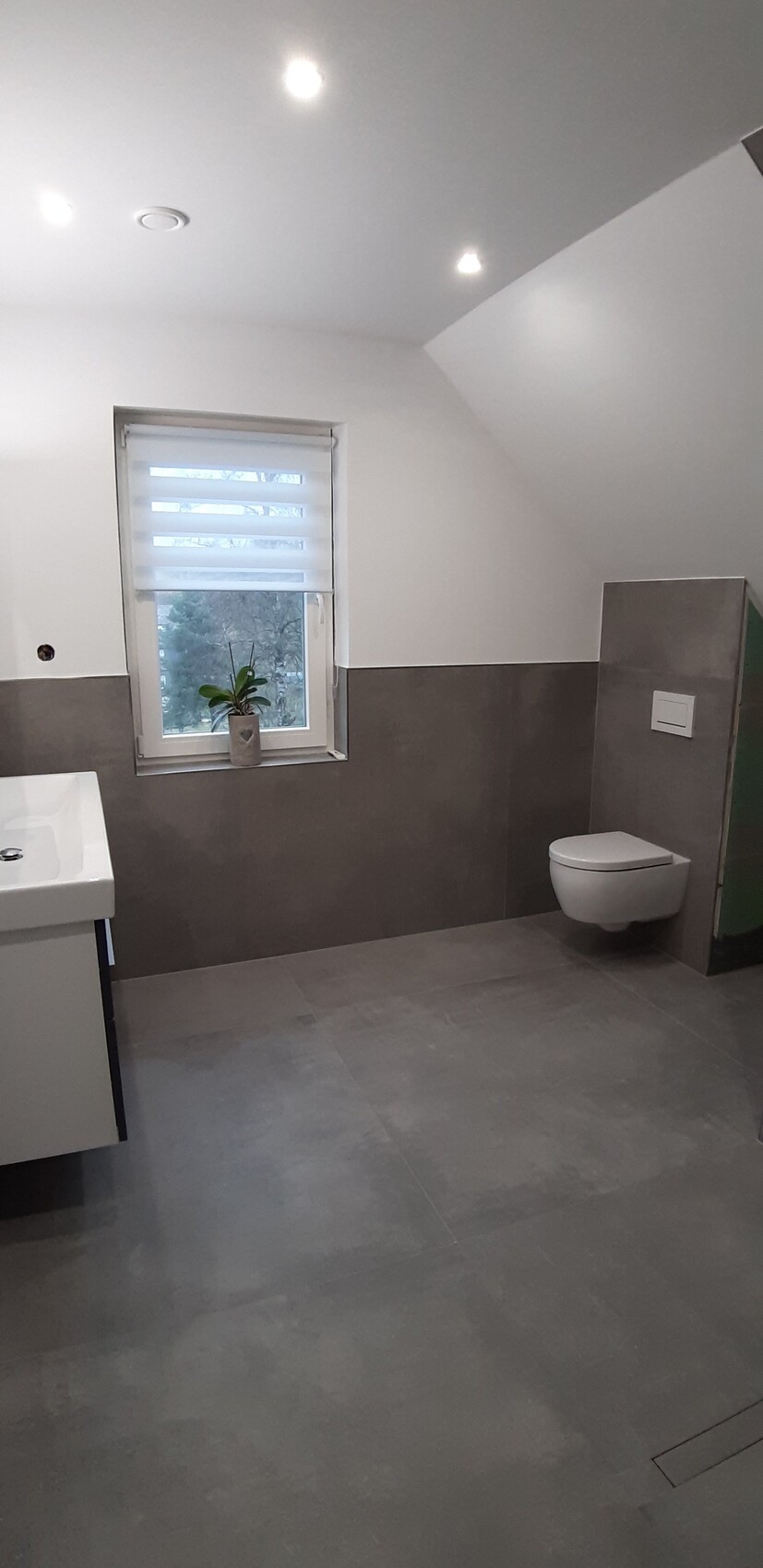 Für uns ideal 🙂Das linke Bild ist auch nicht ganz aktuell. Es wurde danach noch der Fenstergriff gewechselt (Edelstahl) und das Hängerollo wurde durch ein Plissee ersetzt. Die Duschwand und der Raumthermostat (links neben dem Fenster) fehlen auf dem Bild auch noch. Rechts vom Fenster ist jetzt noch ein Regalboden. Die WC-Wand wurde für den Spülkasten etwas vorgezogen, so dass rechts vom WC noch ein einbauschrank für Handtücher etc. ist.Schimi179109.12.20 13:42