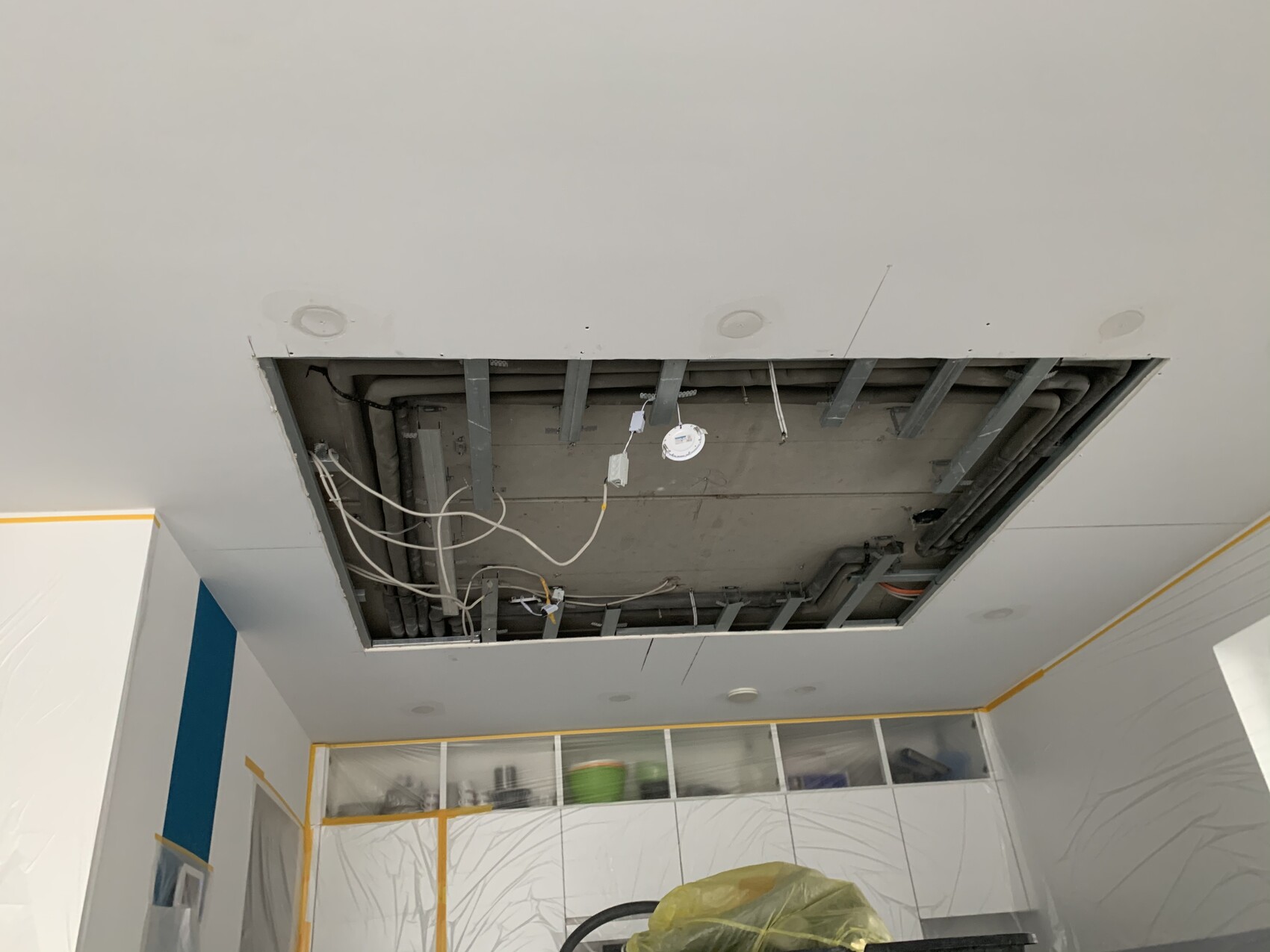 in der Küche musste der Klempner noch Wasser und Heizung verziehen, naja, Theorie und Praxis...ich dachte die liegen nicht genau über den Kochfeld
