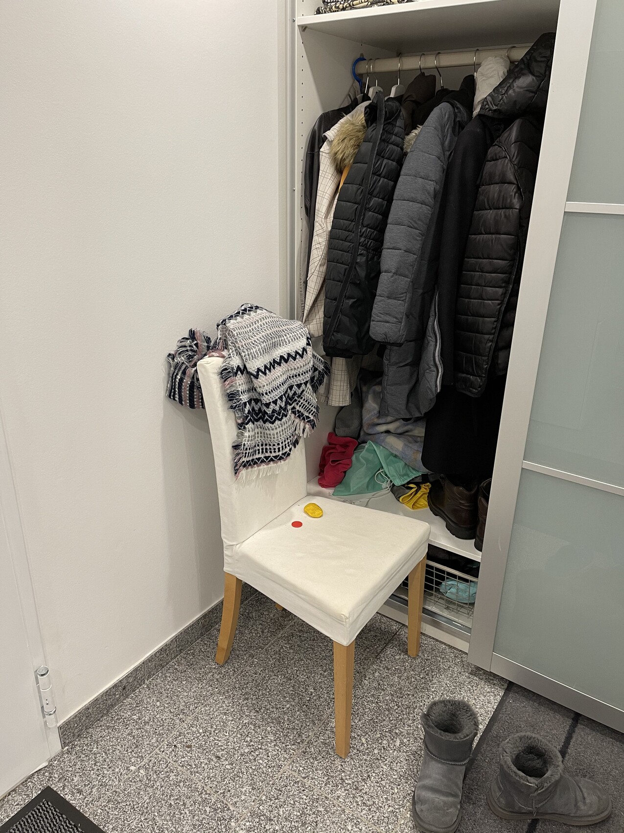 Du hast jetzt aber auch keinen Rat angenommen - also beklag DichMan muss natürlich auch bedenken, dass der Stuhl bei einem Nebeneingang steht, halt im Souterrain zu den Garagen.