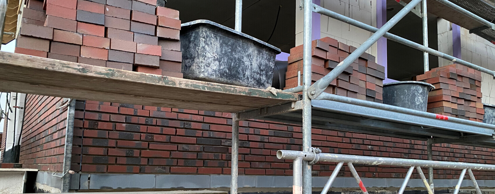 Außer mit der Arbeitsgeschwindigkeit des einen Klinkeres. Sehr netter Mann, aber der arbeitet so aufreizend langsam, dass uns die Nachbarn schon auslachen. Heute war er auch erstmal gar nicht da. Bin etwas irritiert, dass er die Klinker und die angebrachte Dämmung nicht abdeckt gegen den Regen die nächsten Tage.