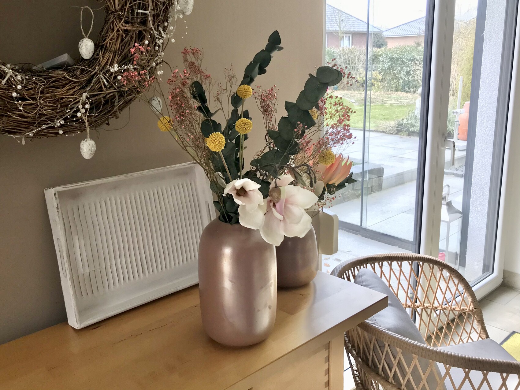 Und um Haus wird ein Schimmer von Frühling groß:Wie witzig, wie jeder Deko und Frühling anders interpretiert (obwohl ich bei Frühlingsdeko ja auch sehr zurückhaltend bin 😉 )
