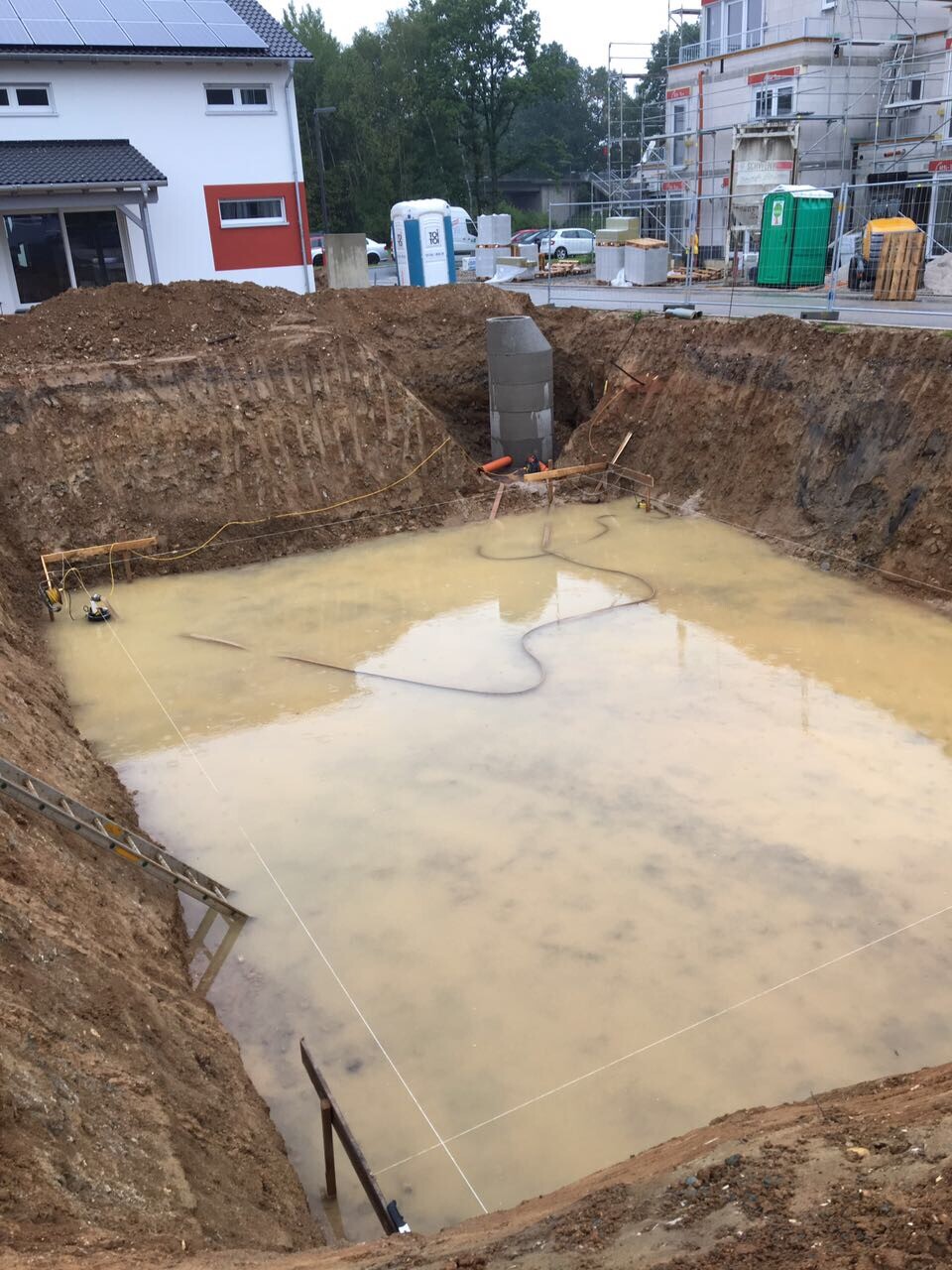 Aber vorher müssen erst noch ein paar Liter Wasser aus der Grube geschafft werden....oder wir machen doch einen Pool bzw. Eislaufbahn daraus