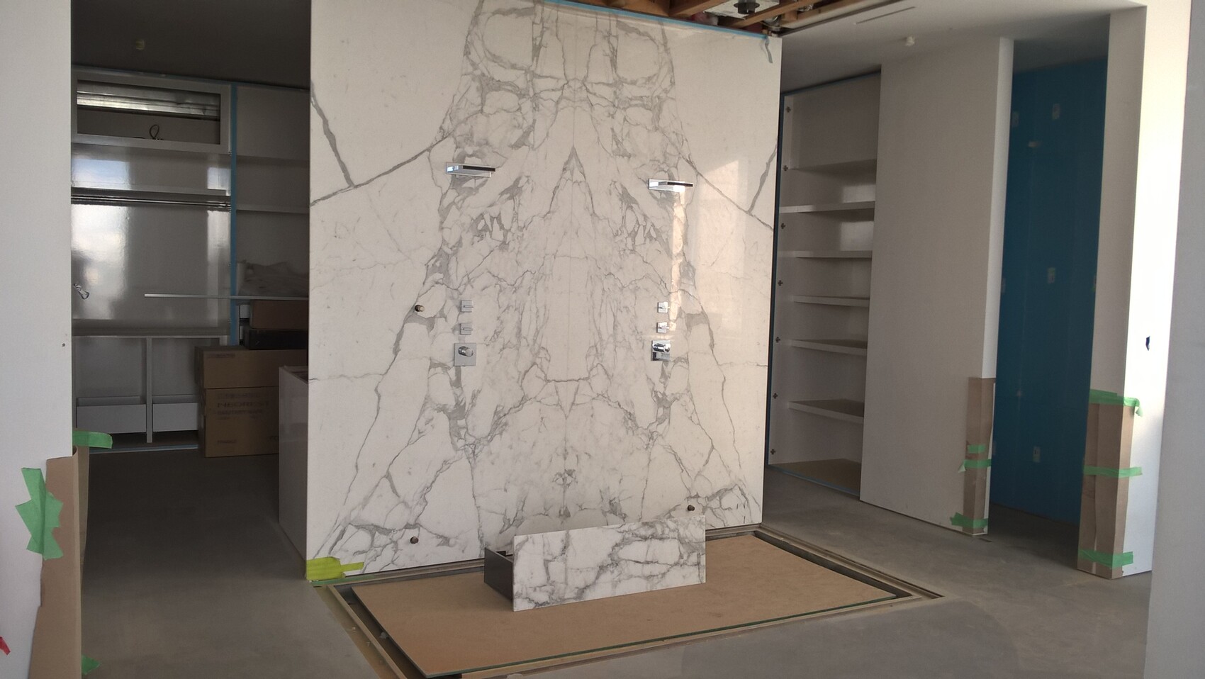 Dusche mit fehlender Verglasung dahinter Walk in Closet
