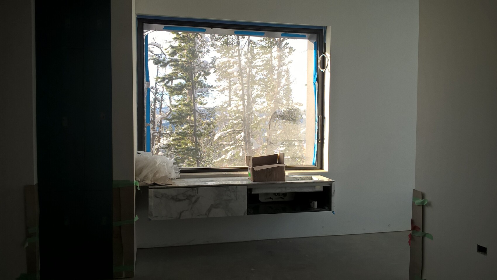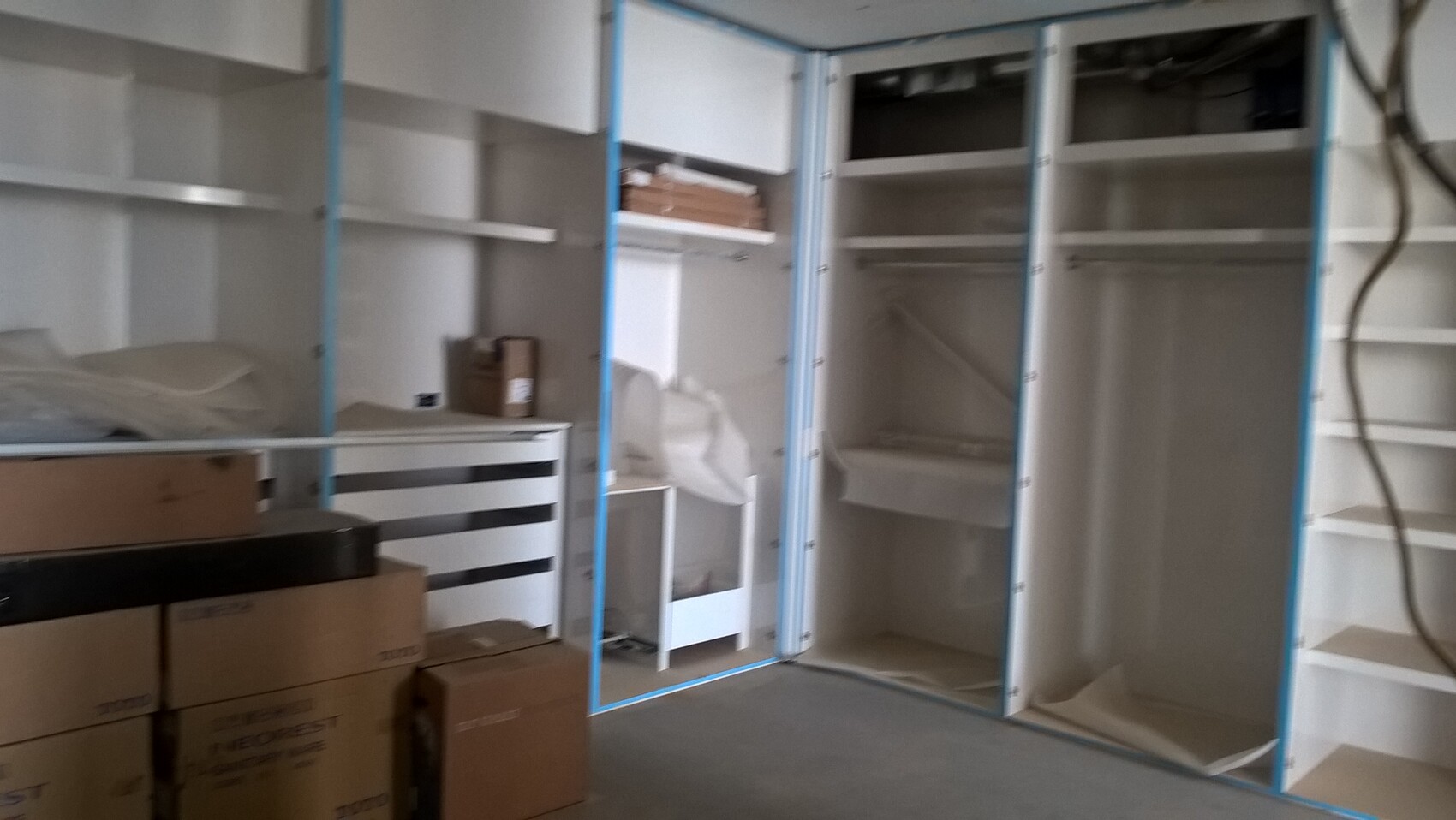 Blick auf einen Teil der Küche es fehlen noch die weissen Klavierlackfronten.