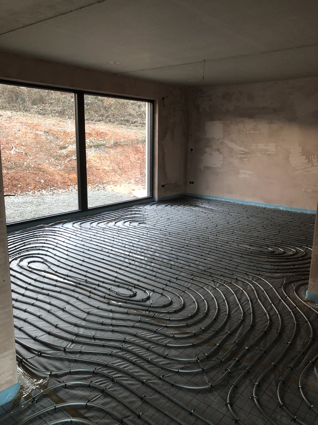 Morgen kommt der Estrich. Heizung ist bis auf Strom startklar.