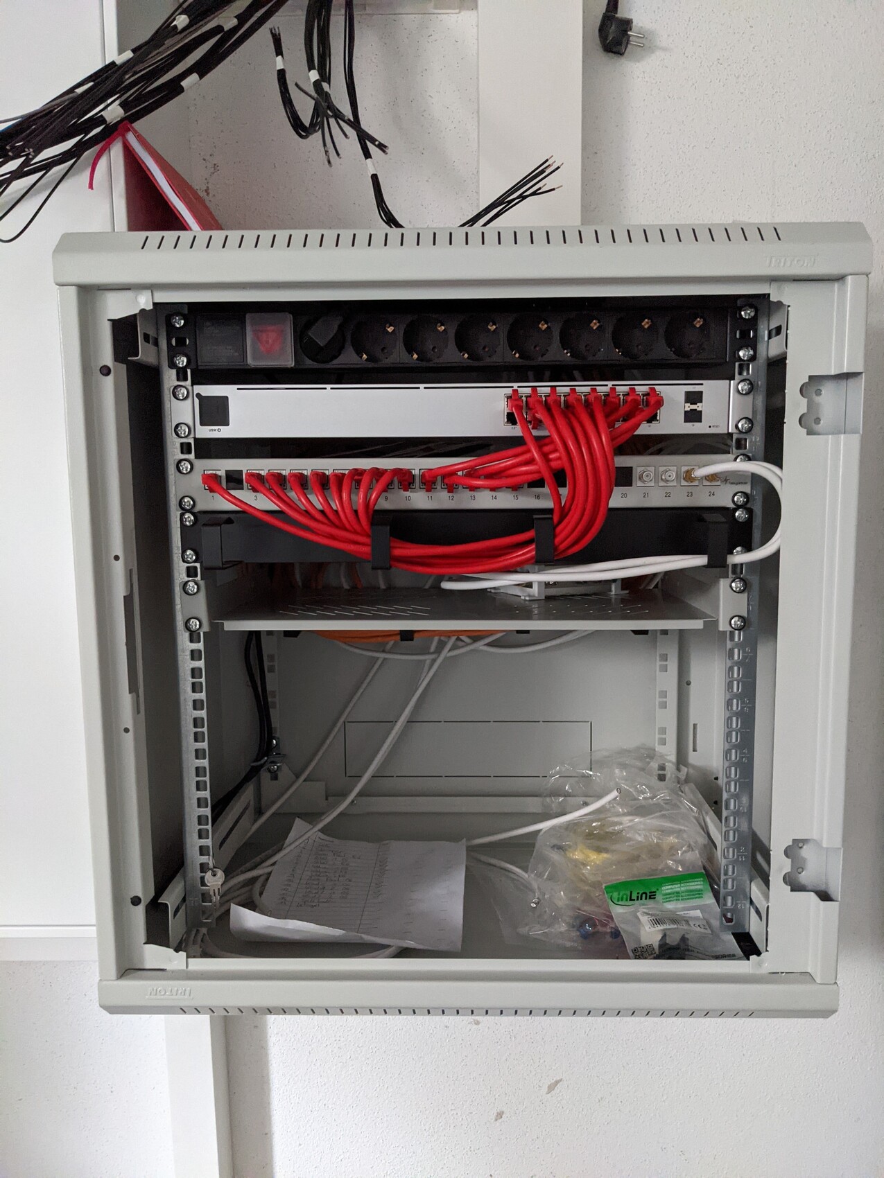 Bei uns ging es die letzten Wochen auch zügig voran. Aktuell sind die Maler drin und bringen die Farbe an die Wand. Ich bin heilfroh, dass wir das (doch) nicht in Eigenleistung machen, wenn ich sehe, wie oft immer wieder kleine Stellen nachgespachtelt und gestrichen wird. Im Wohnbereich und beim Sohnemann ist die bunte Farbe schon an den Wänden. Auch das Bad wurde fertig gefliest und ich freue mich schon, wenn ich das erste mal unter der neuen Dusche stehe 😀 In der Zwischenzeit habe ich mich an den Netzwerkschrank und die Rollladensteuerung gemacht. Nach zwei Wochenenden war alles drin und fertig programmiert.