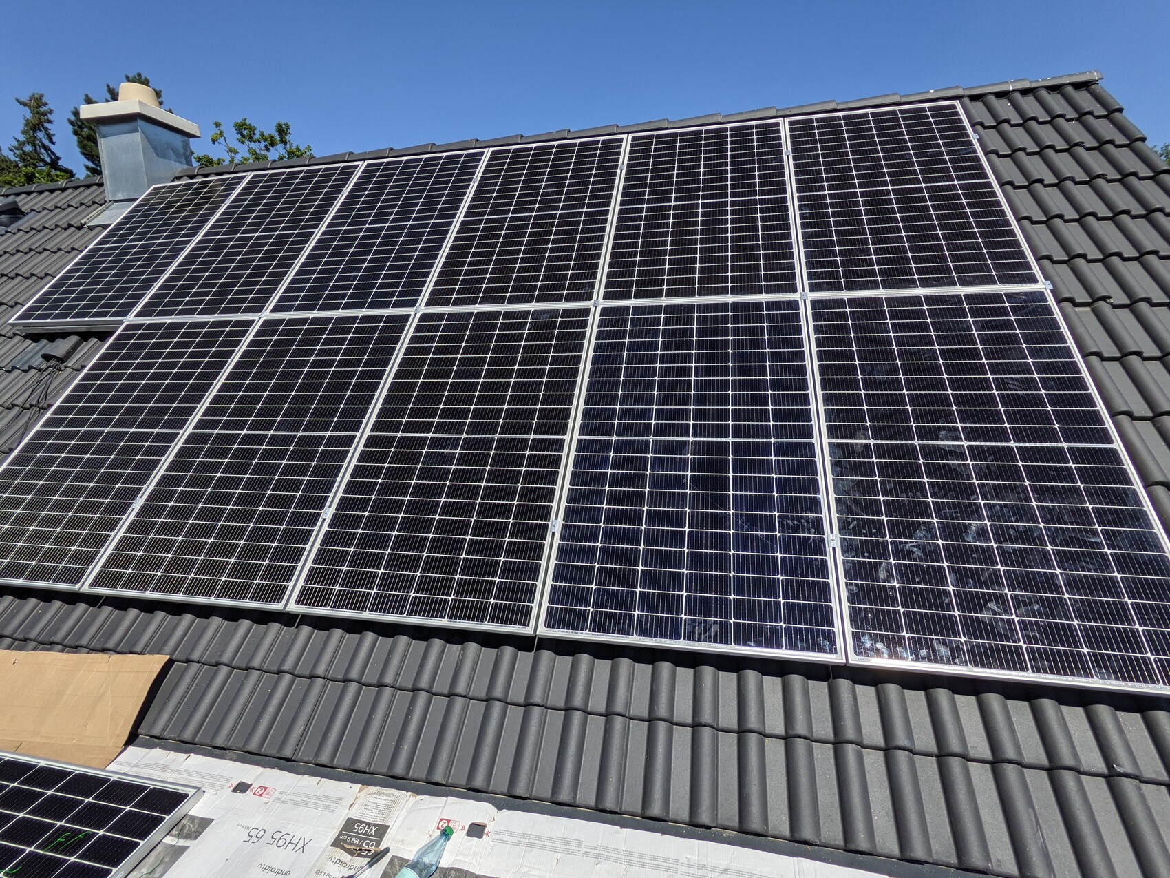 Wird bei mir in 17 Tagen am Umzugstag vermutlich leider nicht viel anders sein. Es ist einfach noch so viel zu tun und die Tage einfach zu kurz.Ich drück die Daumen, dass die letzten Tage noch reibungslos laufen! Es ist der Wahnsinn, wo sich überall am Ende noch kleine und größere Baustellen auftun. Wir haben hier in meinen 3 Wochen Urlaub bis auf 2 Tage nur auf der Baustelle geschuftet. Dafür ist man umso stolzer, wenn man fertig ist und v.a. was man alles gelernt hat 😀Heute haben wir die Module aufs Dach gebracht. Mit 6,8kWp ist das Dach nun komplett belegt. Dank der großen Hitze haben wir nachmittags eine Zwangspause einlegen müssen und konnten erst ab 18:30 Uhr weiterarbeiten. Dafür sind nun aber alle Module drauf.