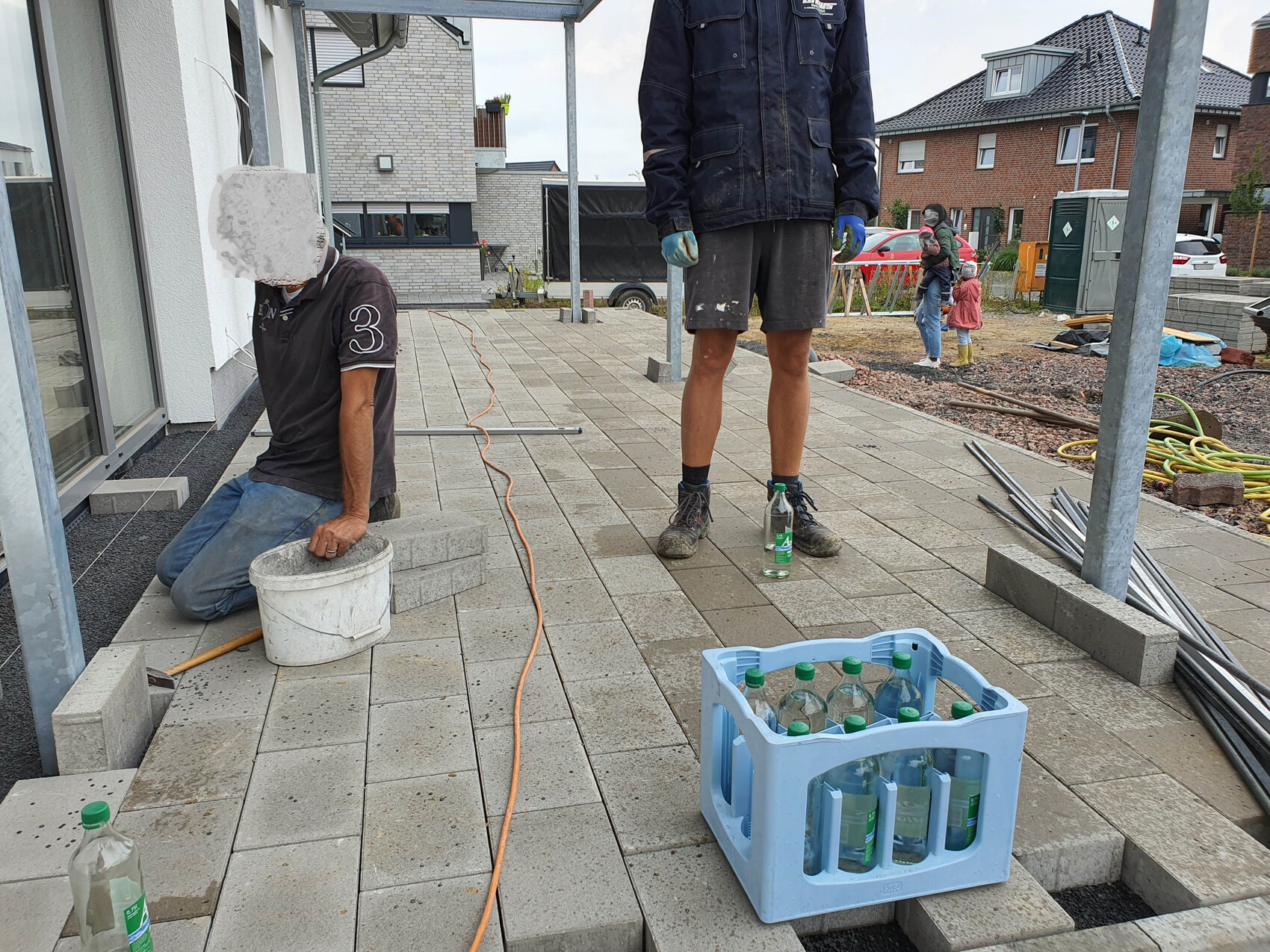 Die Gartenlandschaftsbauer haben bereits einige "grobe" Arbeiten gemacht, ab Freitag werden noch 40m Kantensteine und 3.5m L-Steine gesetzt und Weg sowie Stellplätze geschottert. Rest machen wir selber (plastern). Bei meinem Bruder ist seit Montag Verwandschaft am Baggern, geht auch gut voran... Nun ist aber auch nix mehr mit halbtags rumdudeln, seit Montag mindestens von 7.00 - 19.00 auf´m Bau. Büroarbeit vorher und nachher, bissel telefonieren geht auch fast nicht ...