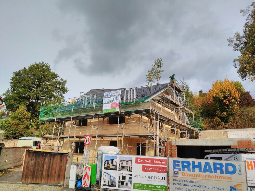 Bei uns kam letzte Woche der Außenputz darauf. Nach ein paar Diskussionen kommt am Mittwoch der Estrich rein. Damit sieht alles gut aus für den geplanten Einzug kurz vor Weihnachten.