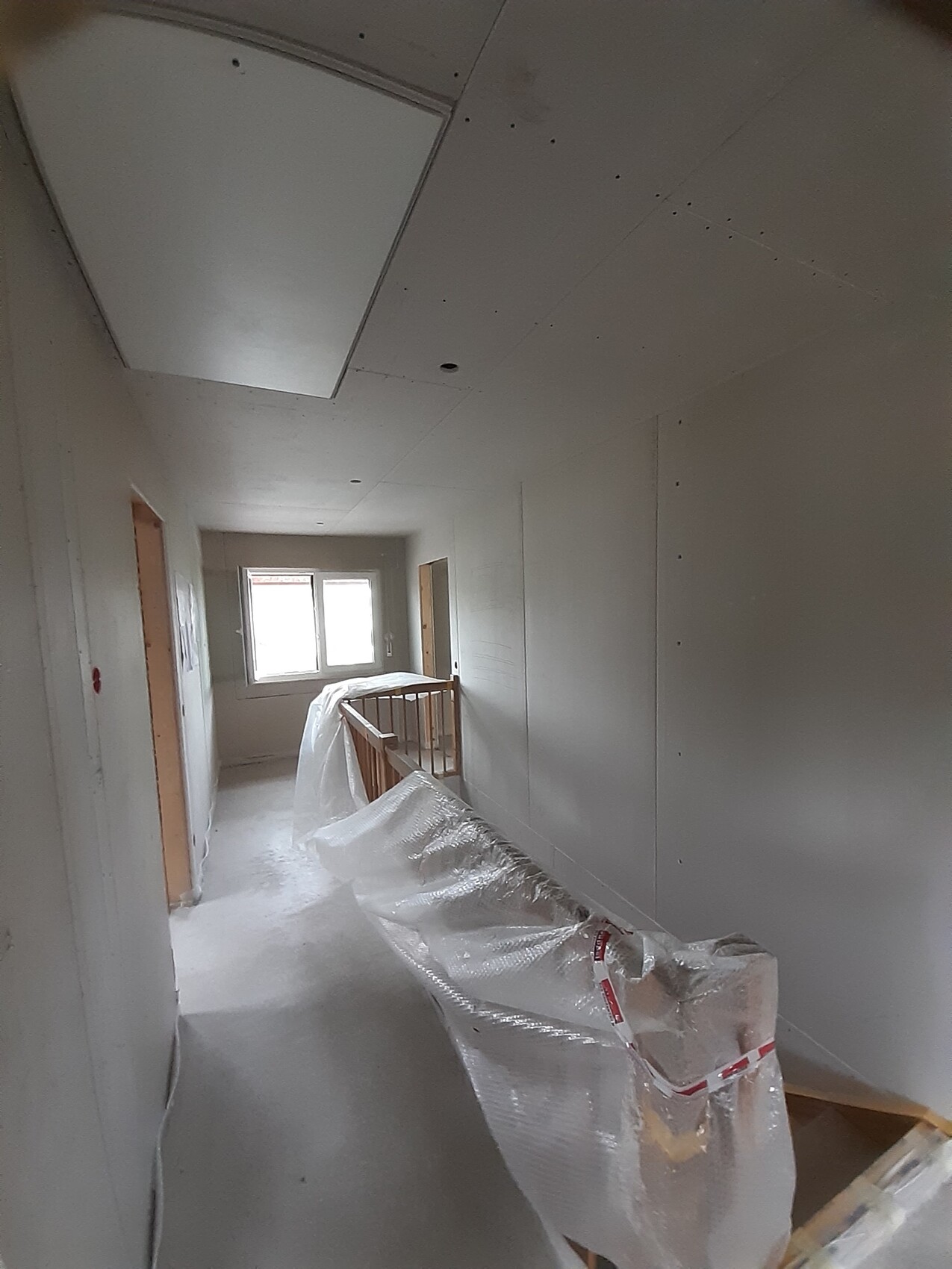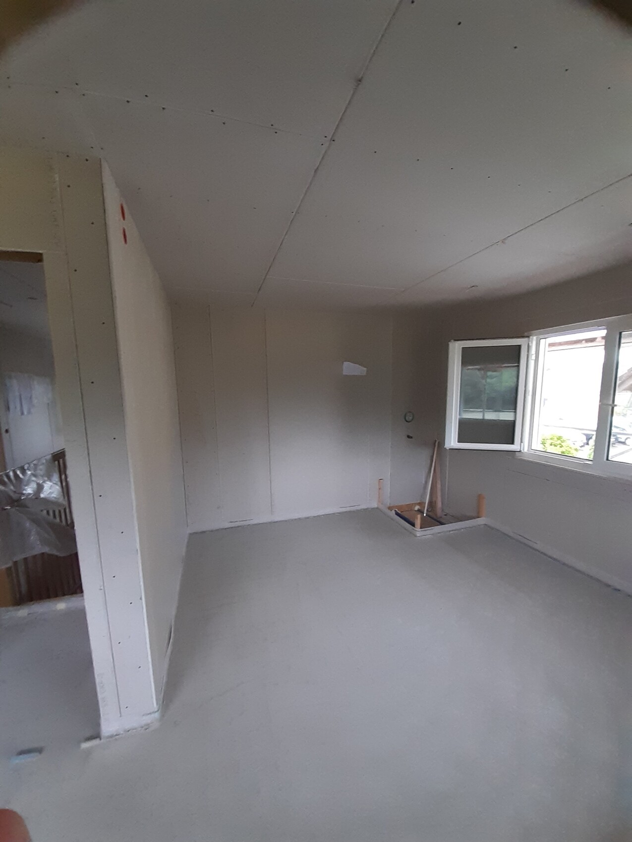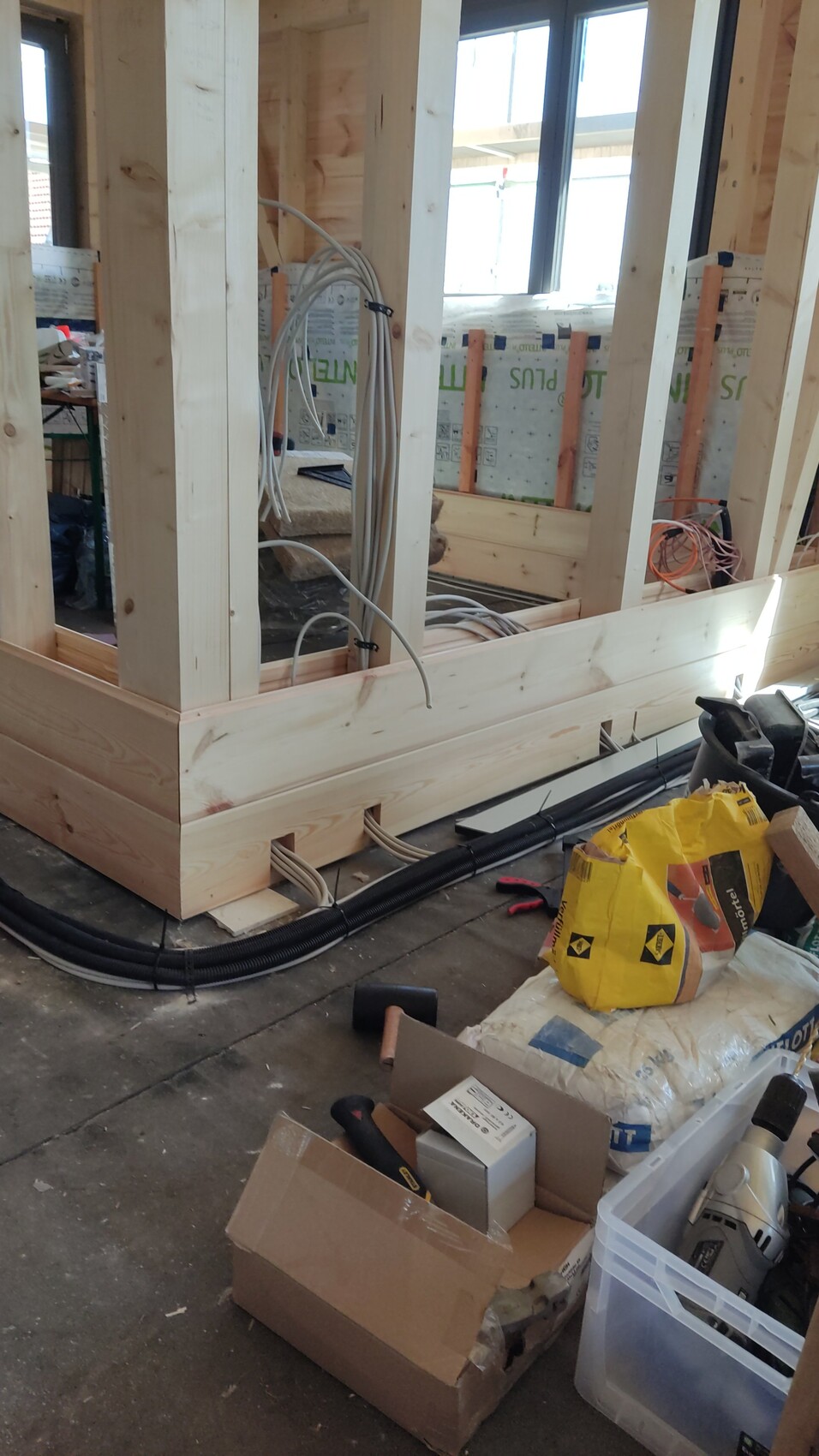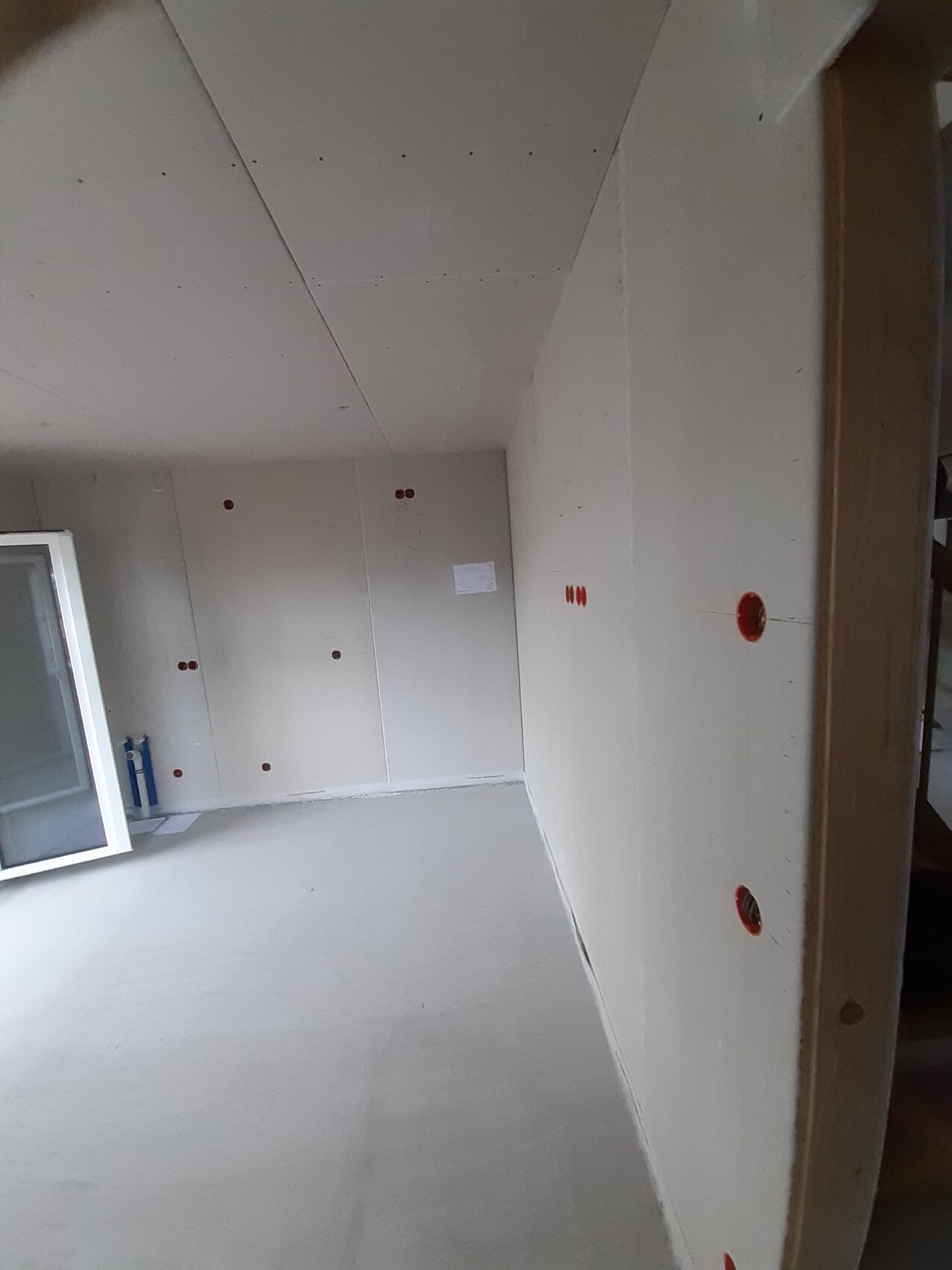 Heißt für uns überall die Installationsebene zu Ende anbringen, die Installationsebene dämmen und unten zu machen, mal mit Holz, doppelt Gipskarton oder doppelt Fermacell.