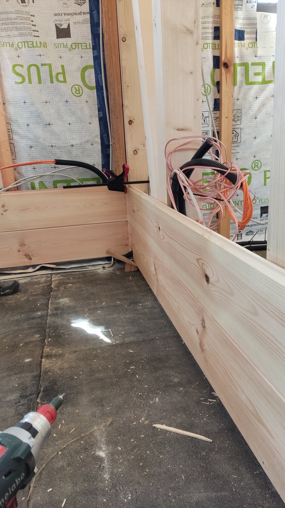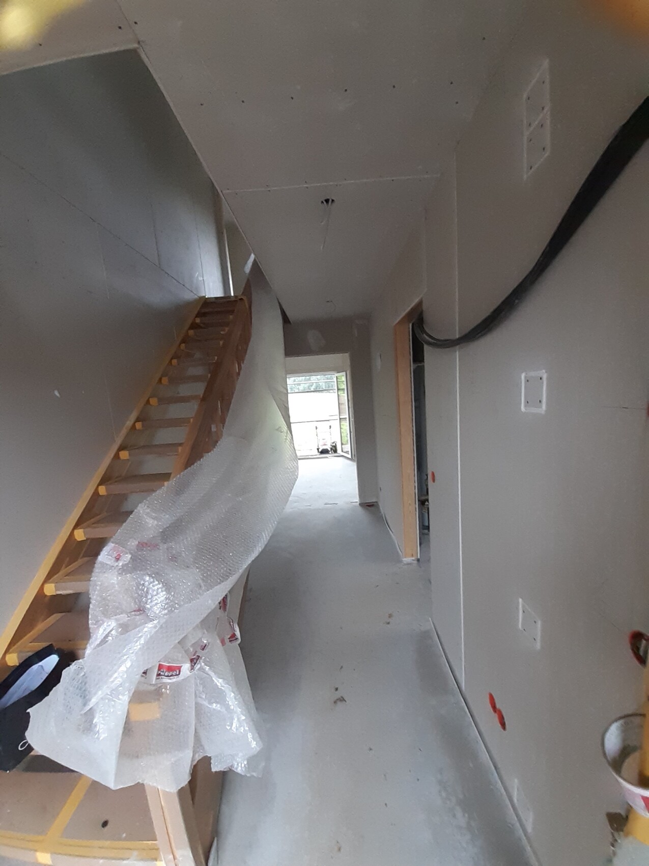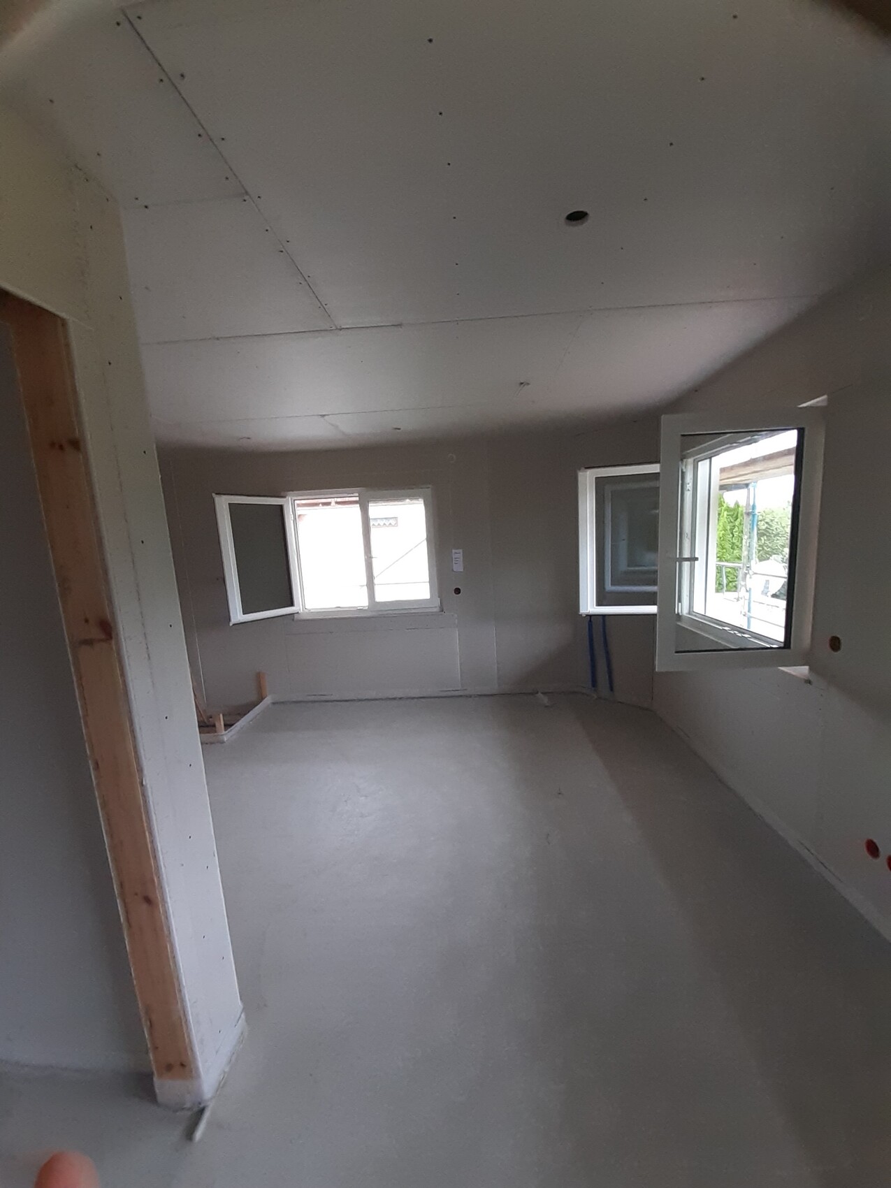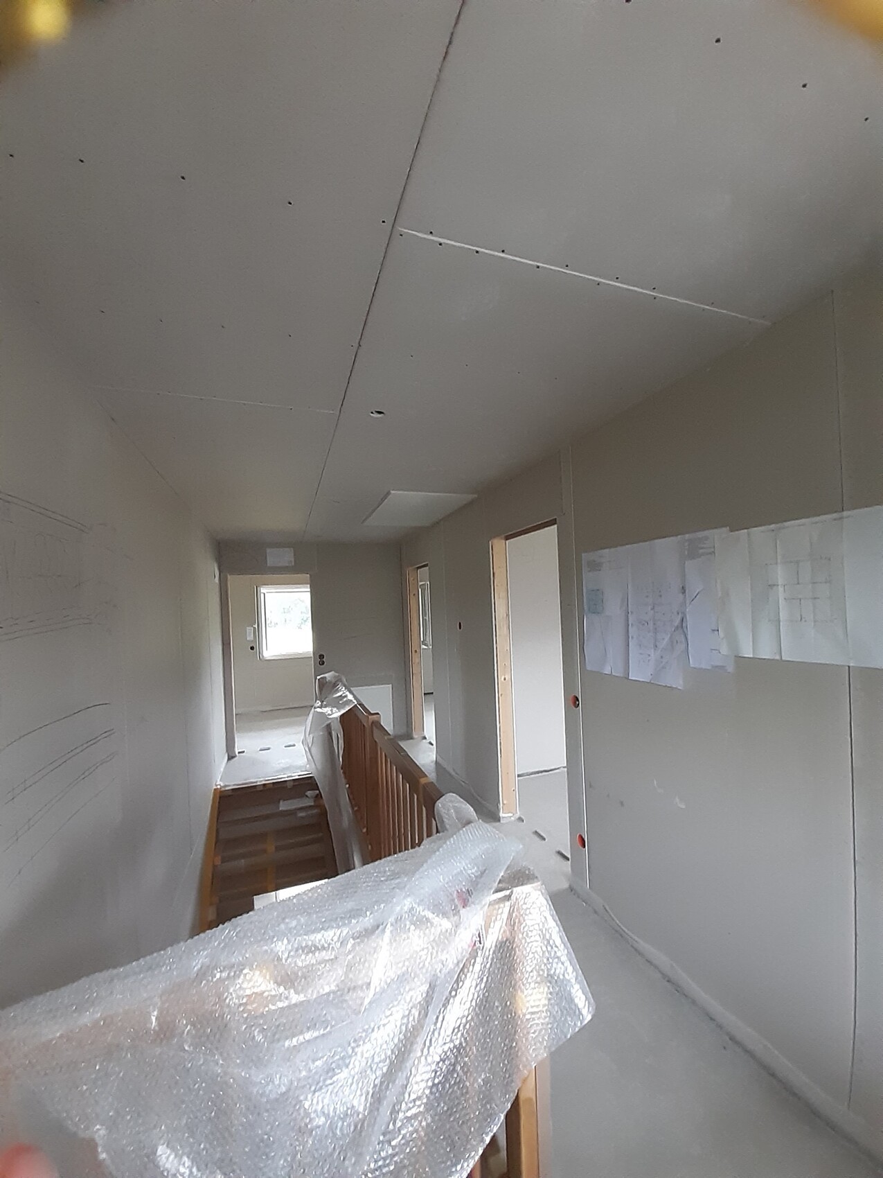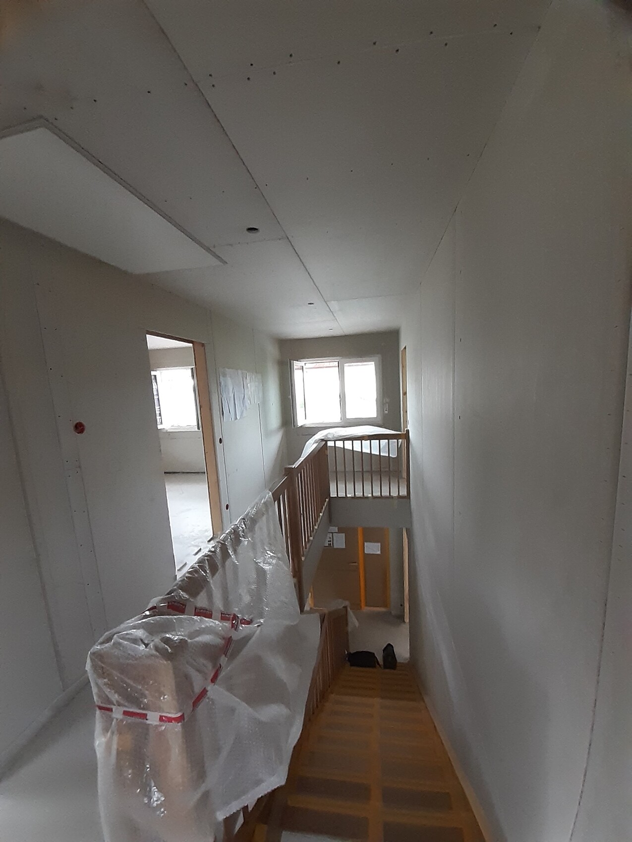 Heißt für uns überall die Installationsebene zu Ende anbringen, die Installationsebene dämmen und unten zu machen, mal mit Holz, doppelt Gipskarton oder doppelt Fermacell.