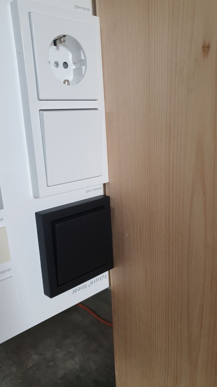 Außerdem haben wir Schalter und Steckdosen ausgesucht. Für alle sichtbaren wird es Busch-Jaeger in futur linear, schwarz matt, für den Rest irgendwas günstiges in weiß.