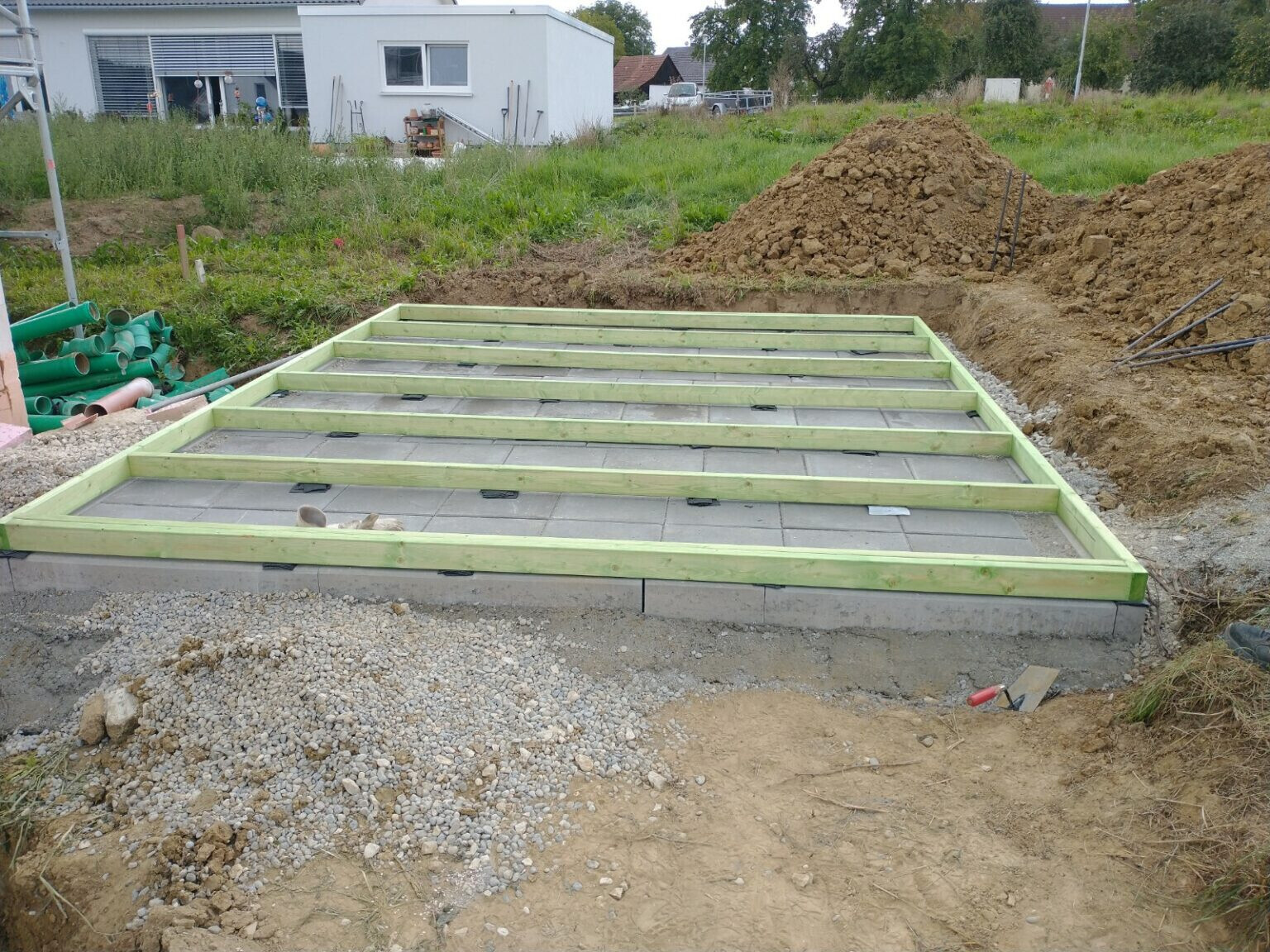 Ja, wir haben auch ein Plattenfundament gemacht. Schicht Schotter, Randsteine in Beton und zwischendrin Gehwegplatten auf Schotter + Splitt. Das Grundstück macht leider an der Stelle einen ziemlichen Knick und hat auch noch ausgerechnet den höchsten Punkt. Also muss man etwas runter damit man nachher nicht zu hoch rauskommt. Vorher bin ich auch noch nie Minibagger gefahren, das ist dann auch nicht so effizient wie geplant. Und ein 1t Bagger war bei dem trockenen bockelharten Lehm auch nicht ideal. Und dann kam noch dazu, dass ich mir mit den Erdhäufen den Platz verbaut habe. Grobplanum im Wasser ist auch in der Theorie leichter als in der Praxis, wir haben das erst dann mit den Randsteinen im Wasser gehabt. Bis die richtig im Wasser sind, dauert es eben auch. Und so zieht es sich halt durch die ganze Aktion...gefühlt haben wir alle Laienfehler mitgenommen.