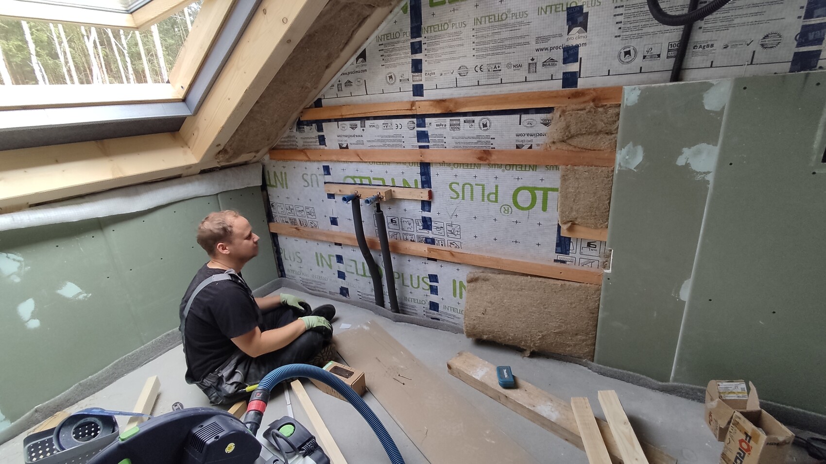 Wir haben auch das erste Mal die Fensterlaibungen eingebaut.