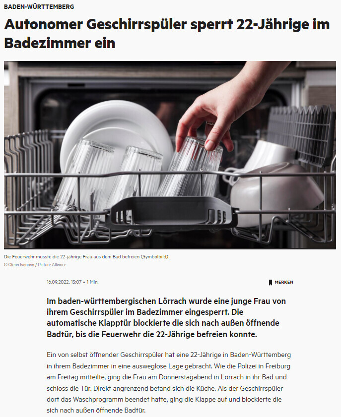 - Dich haut es beim Socken aus der Schublade nehmen mit einem Kreislaufkollaps, Hexenschuss oder was auch immer danieder, du liegst/sitzt dann da weitgehend bewegungsunfähig auf dem Boden und keiner kommt rein.