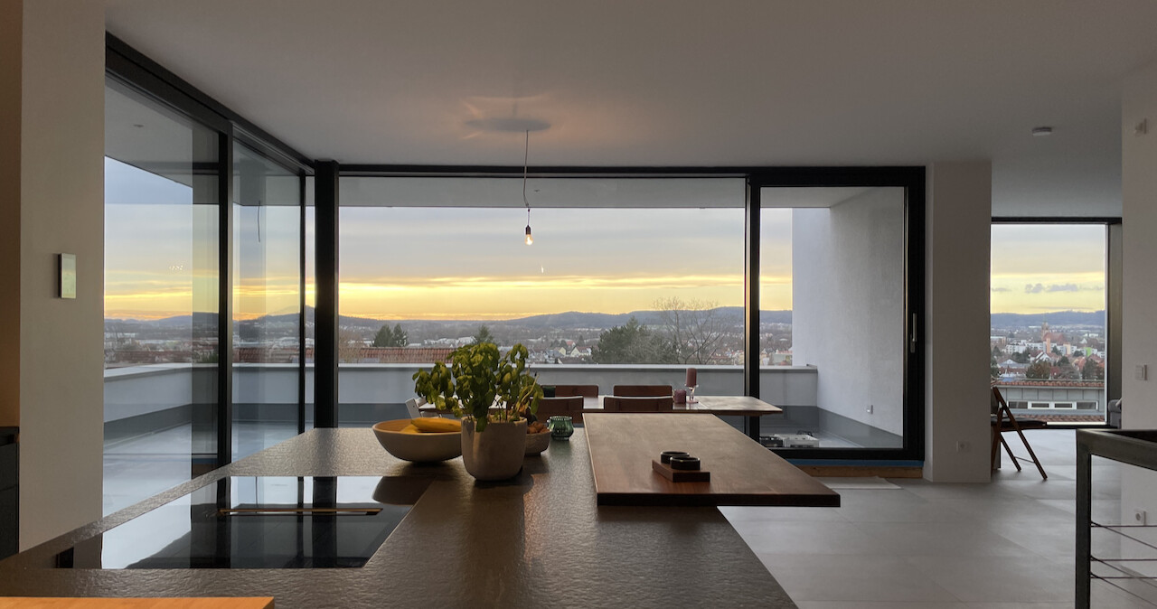 Absolut nicht mein Stil, aber sieht wahnsinnig toll aus. Die Aussicht - mega!! Herzlichen Glückwunsch zu diesem Traumhaus : )
