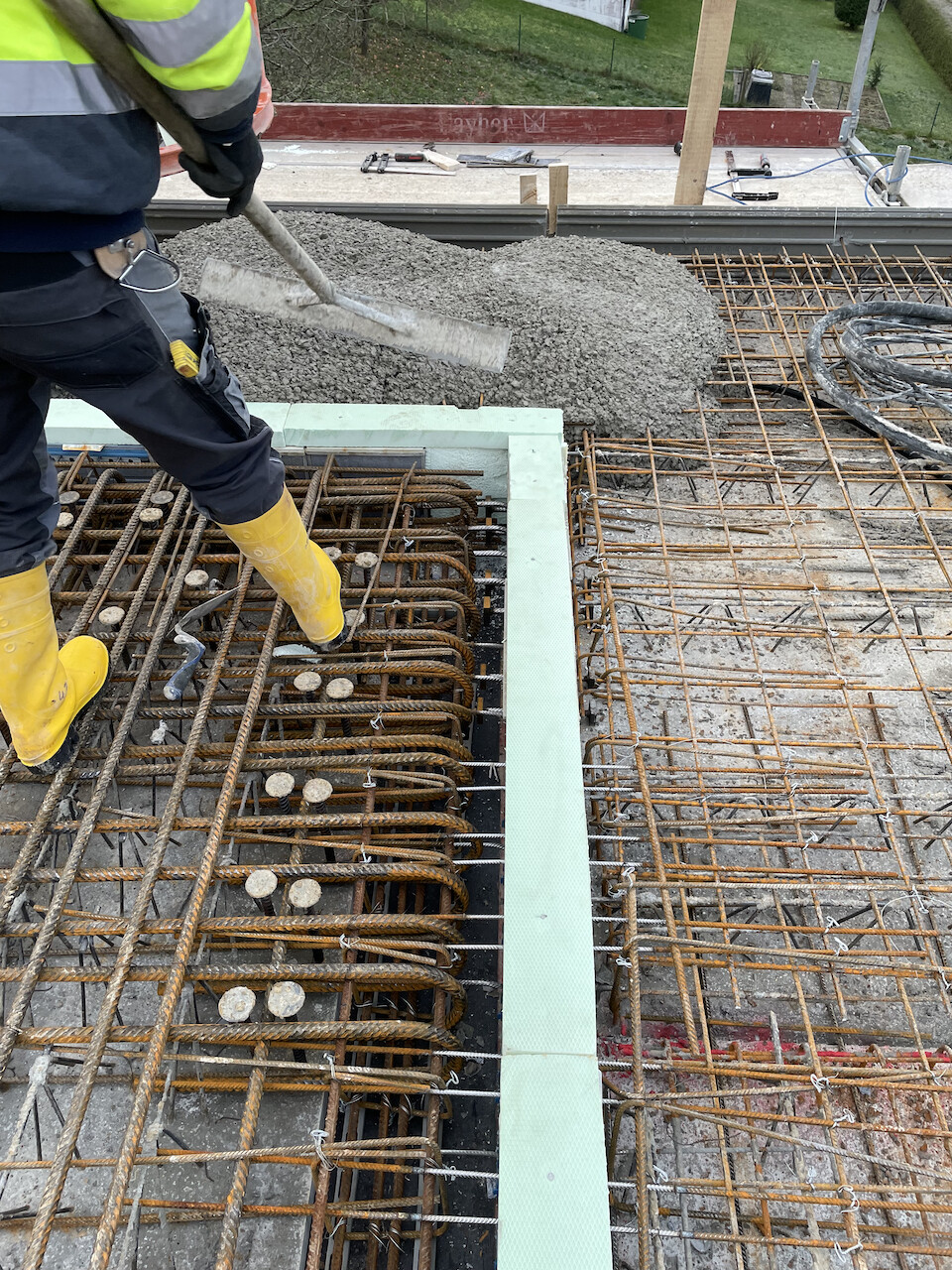 Das Dach selbst ist eine Massivkonstruktion, die Betondecke ist mittels Isokörben und Schwerlastdorn angebunden, anbei ein Eindruck der Bewehrung im Bereich der Glasecke.