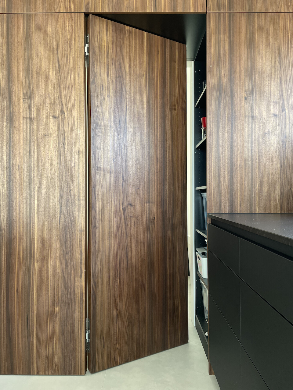 Großes Kompliment, ganz tolles Haus, offensichtlich mit sehr viel Liebe zum Detail geplant! Den Kontrast zwischen Fußboden, Wänden und dem Nussbaum finde ich sehr schön! Sind die raumhohen Türen individuelle Schreinerlösungen oder einer der Standardhersteller?