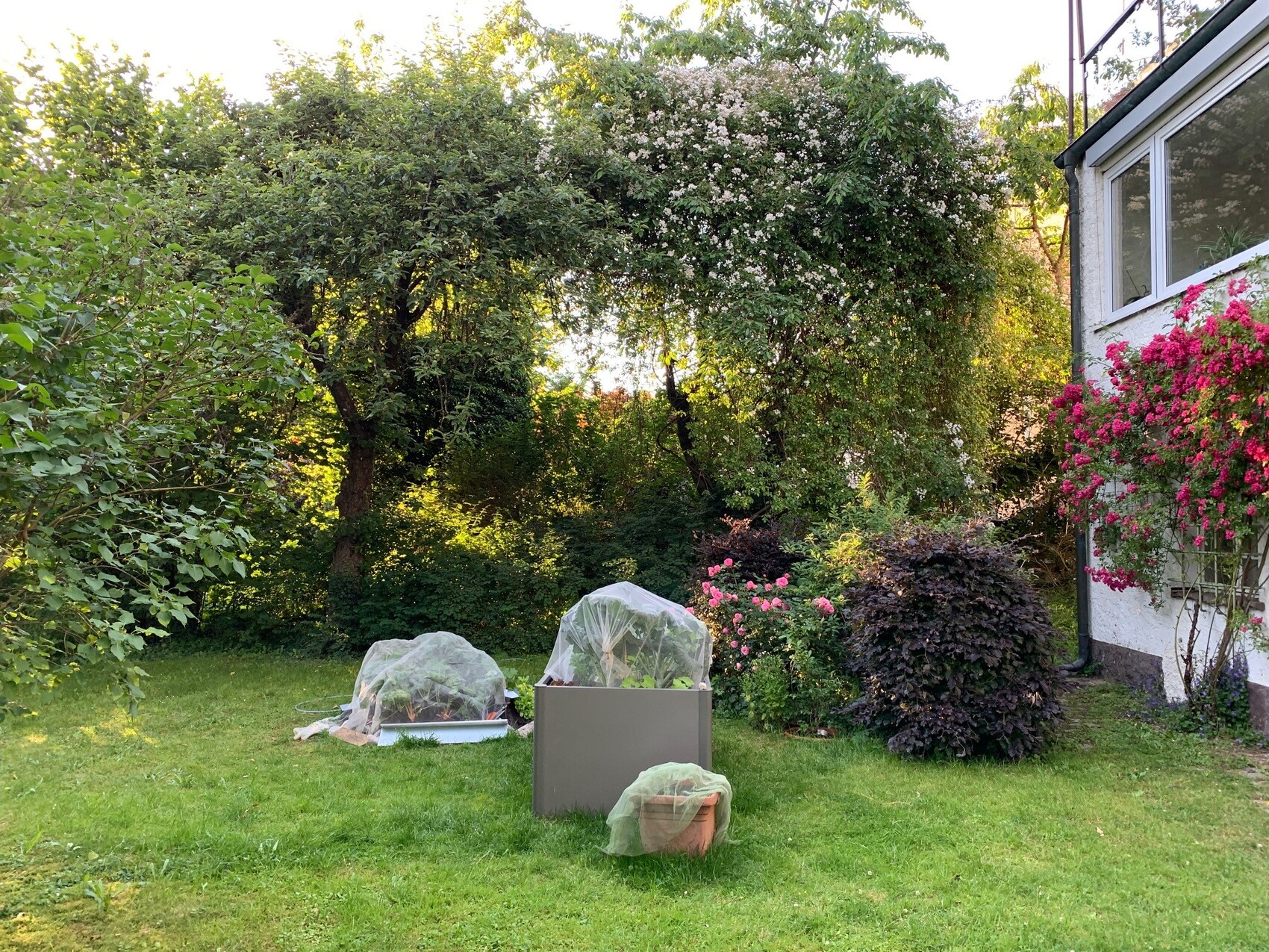 Im Frühling haben wir den Balkon wieder begrünt und eine Wasserversorgung per Grundwasserpumpe so nachgerüstet, so dass wir nun auch oben und im Garten unten bewässern können.