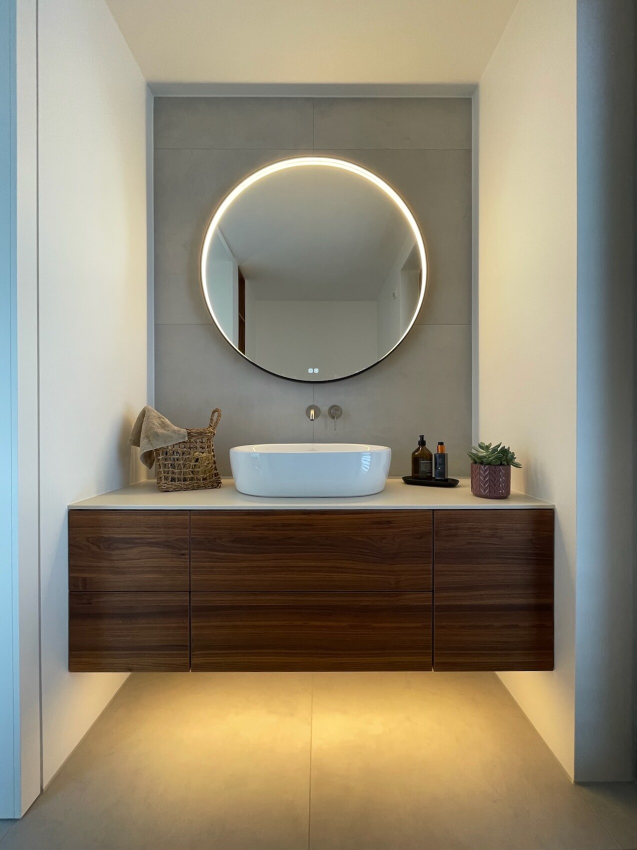 Nach endloser Suche haben wir nun auch ein passendes Spiegelmodell gefunden - mit integriertem Licht, welches tatsächlich hell genug ist und nicht nur diffus den Raum beleuchtet sowie eine Möglichkeit zum Dimmen und zur Einstellung der Farbtemperatur bietet. Testbestellung erfolgreich, die beiden anderen fehlenden baugleichen Spiegel können kommen.