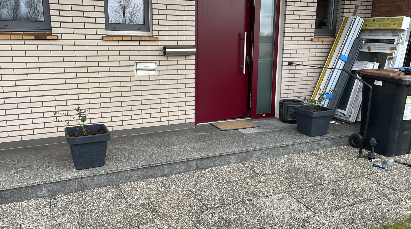 Nachdem meine Terrasse ja inzwischen fertiggeworden ist, habe ich die Reste für die Neugestaltung des dann doch in die Jahren gekommenen Eingangsbereiches in Angriff genommen. Altes mit Granit belegtes Eingangspodest hat einen modernen Belag bekommen und die Waschbetonplatten aus den 60er sind einem natürlich Holzeingangsbereich gewichen. Gesäumt von einem Beet voll blühender Pflanzen-