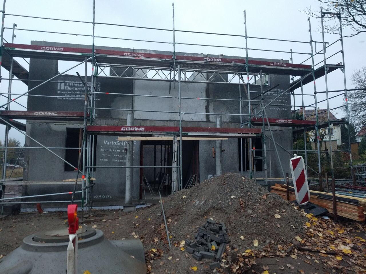 Aber heute war der 12 Arbeitstag seit Beginn inklusive 30 cm Mutterboden raus , 70 cm wieder anfüllen, Bodenplatte und Außenmauern halb hoch , finde das sehr gut .