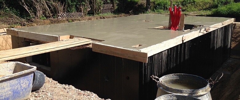 Wenn sonst keiner will, mach ich direkt noch mal. Heute wurde betoniert. Ein Loch in einer Kontrollierte-Wohnraumlüftung-Leitung wurde noch vorab vom Installateur repariert. Als die Betonpumpe schon bereit stand haben wir mal nachgemessen und festgestellt, dass die Kontrollierte-Wohnraumlüftung-Leitungen gut 10 cm zu weit nach innen gebündelt wurden, was heißt dass 2 der Leitungen im EG statt durch den Abstellraum durch die Garderobe bzw. den Flur in Richtung OG laufen würden, was gar nicht geht. Außerdem lagen 3 Leitungen (quer von links nach rechts auf dem vorherigen Foto von gestern) zu dicht beieinander, sodass kaum Beton dazwischen gekommen wäre, da war der Statiker nicht von begeistert. Wir haben das also kurzerhand korrigiert, einmal den Abstand zwischen den Leitungen (Kabelbinder durchschneiden, Leitungslauf korrigieren und wieder mit Kabelbindern am Eisen befestigt) und dann den Durchbruch zwischen KG und EG neben dem Sammelpunkt der Kontrollierte-Wohnraumlüftung-Leitungen geändert, Eisenmatten geschnitten und die Leitungen so nach außen verlegt, dass sie nun vom KG durchs EG zum OG auch da verlaufen, wo sie auch eigentlich laufen sollen, nämlich im EG durch den Abstellraum. Wenn man sich nicht um alles kümmert und nur einen Tag mal nicht auf der Baustelle schauen würde...