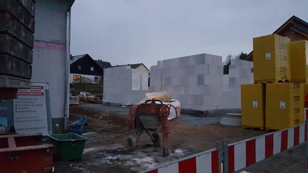 Nächste Woche wird das EG abgeschlossen, Decke kommt und ich gehe davon aus, dass die Treppe gegossen wird.